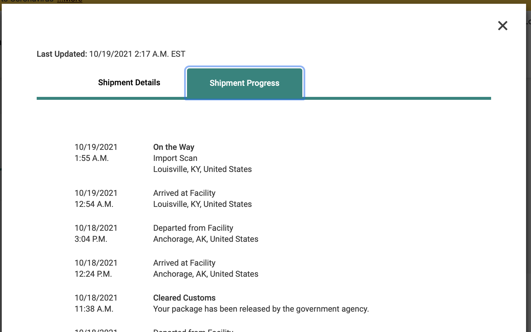 I wish they would all provide the same tracking UPS does so you can see the scans as it goes to different countries.TNT tracking is terrible... it seems to update very rarely and then several steps at once.