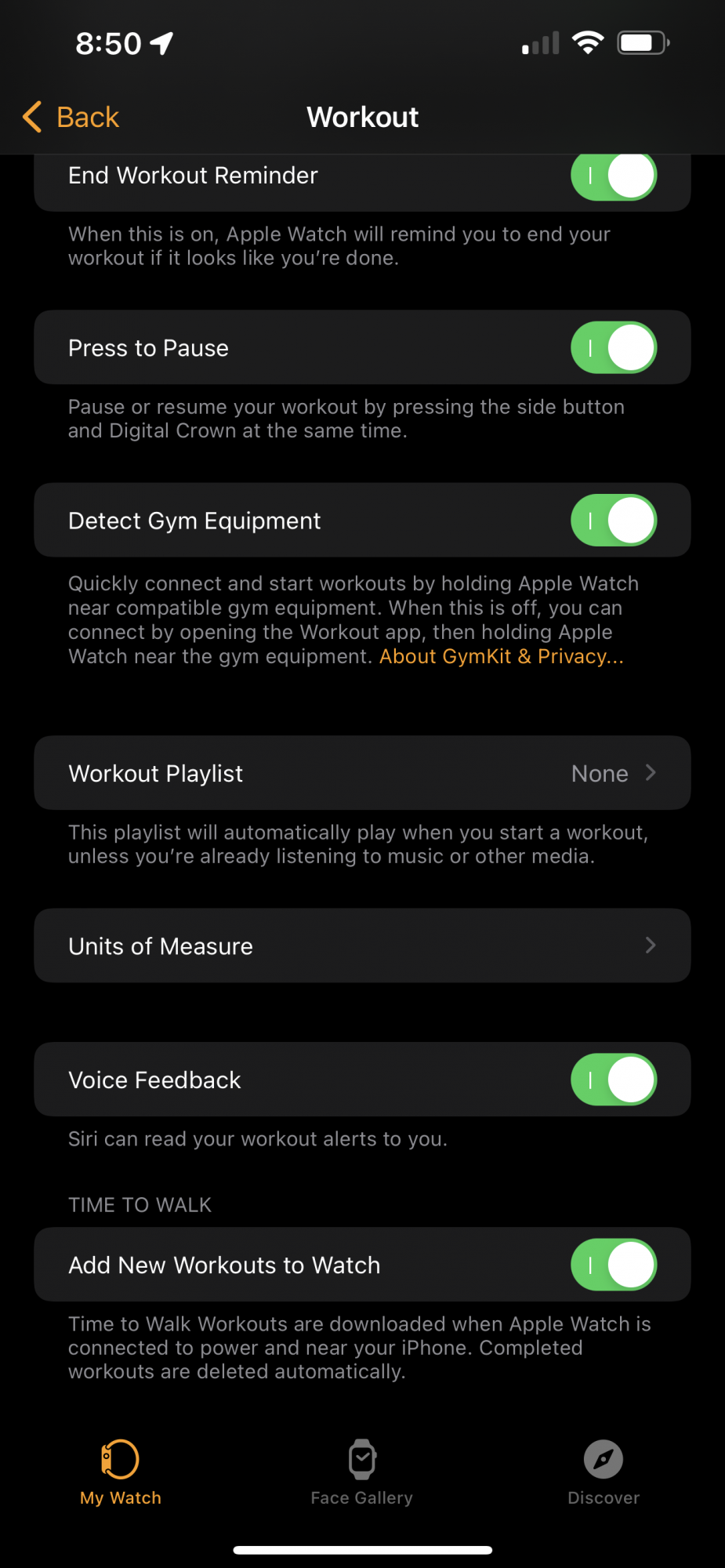 Go Watch app, then down to workouts and toggle to your liking. In my finding, your watch can’t be on silent or that will cancel out the setting. Even if you have on AirPods Pro, PowerBeats Pro, other Bluetooth etc it still gets cancelled which I feel is a slight oversight.
