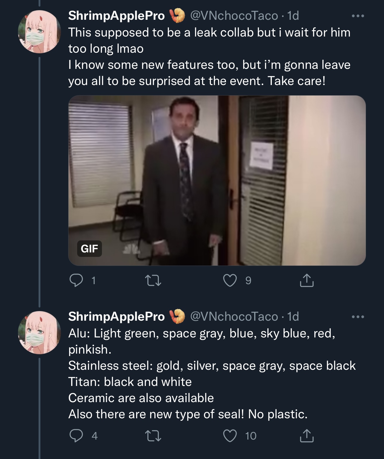 I hope he is wrong! Really loving the flat design leaks!We‘ll see, but I call BS on this, for many reasons. Too many reliable leakers confirmed the flat edges (Kuo, Gurman). Way too many models/SKUs in this list. But no silver Alu? White Titanium and Ceramic? No way …