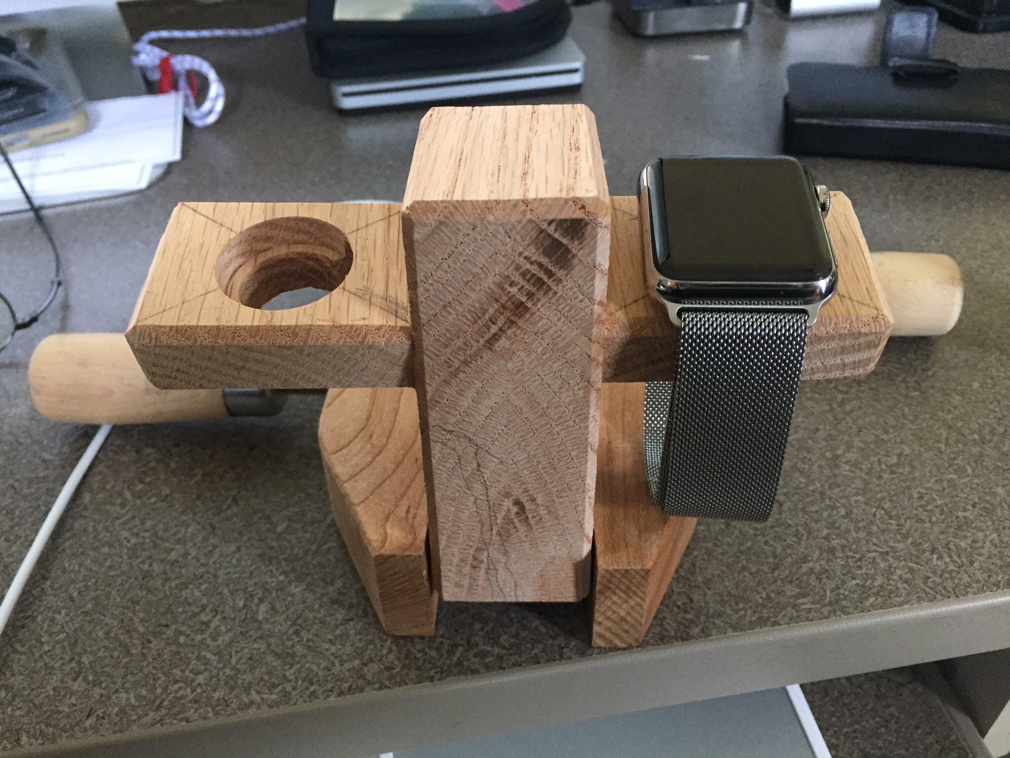 I know it isn't the best looking stand compared to all the awesome stuff everyone is making, but. My kids made this for me. They are 8 and 3 and they decided what kind of "stand" I needed. With a little bit of help from their Dad, they made me a Watch Charging Chest where I can store my bands under where the Watch is docked. There's still some painting to do but this is what it looks like as of now and I LOVE it!
