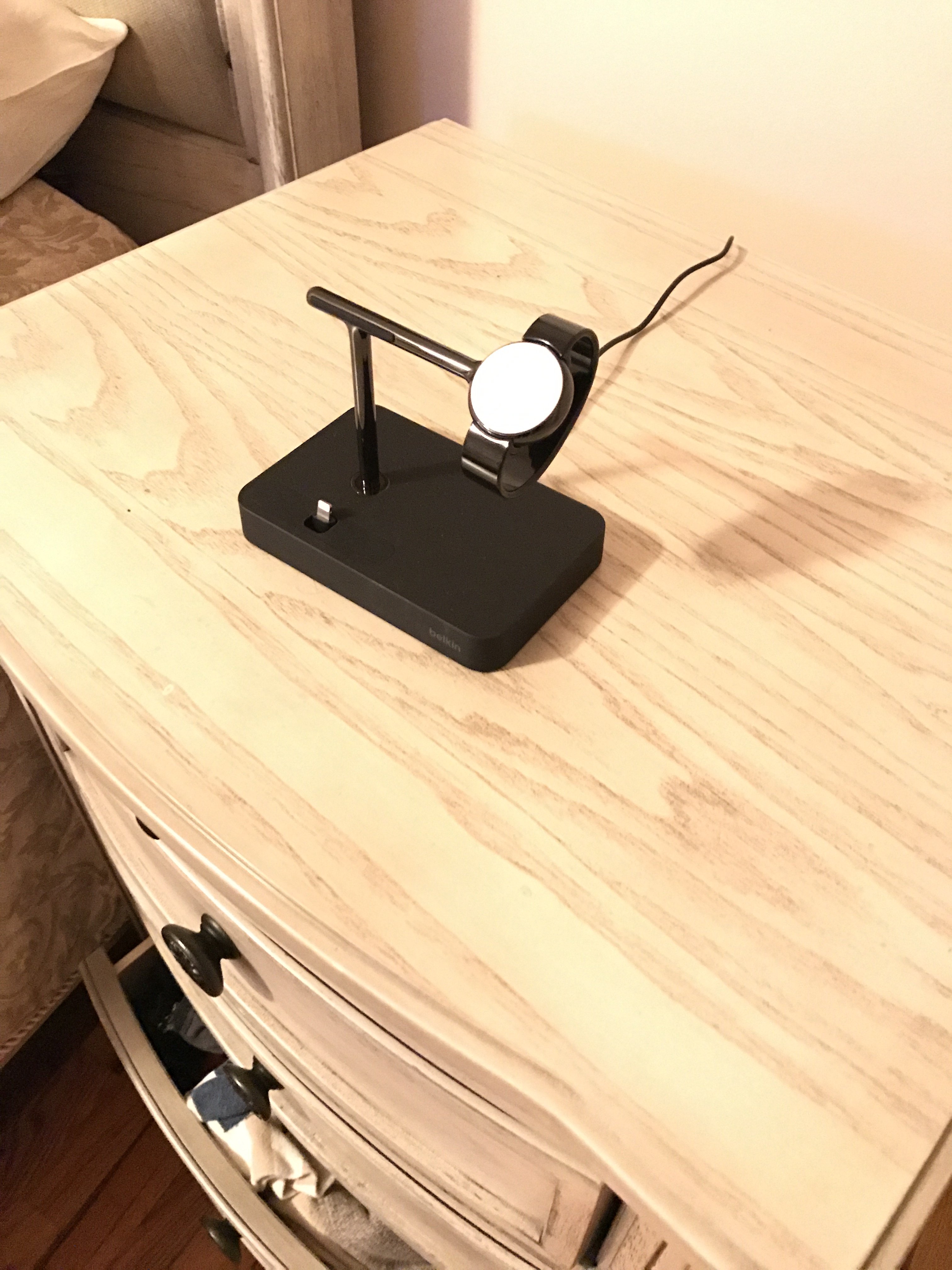 Orzly DuoStands. (much cheaper, and can use any case with it aswell due to the iPhone part being your actually lightning cable, rather than the restrictive connector that most dock uses). The AppleWatch section still docks as a proper dock though, and the lightning cable has a slot to stop the cable flapping about, so I'm pretty happy with the current setup.