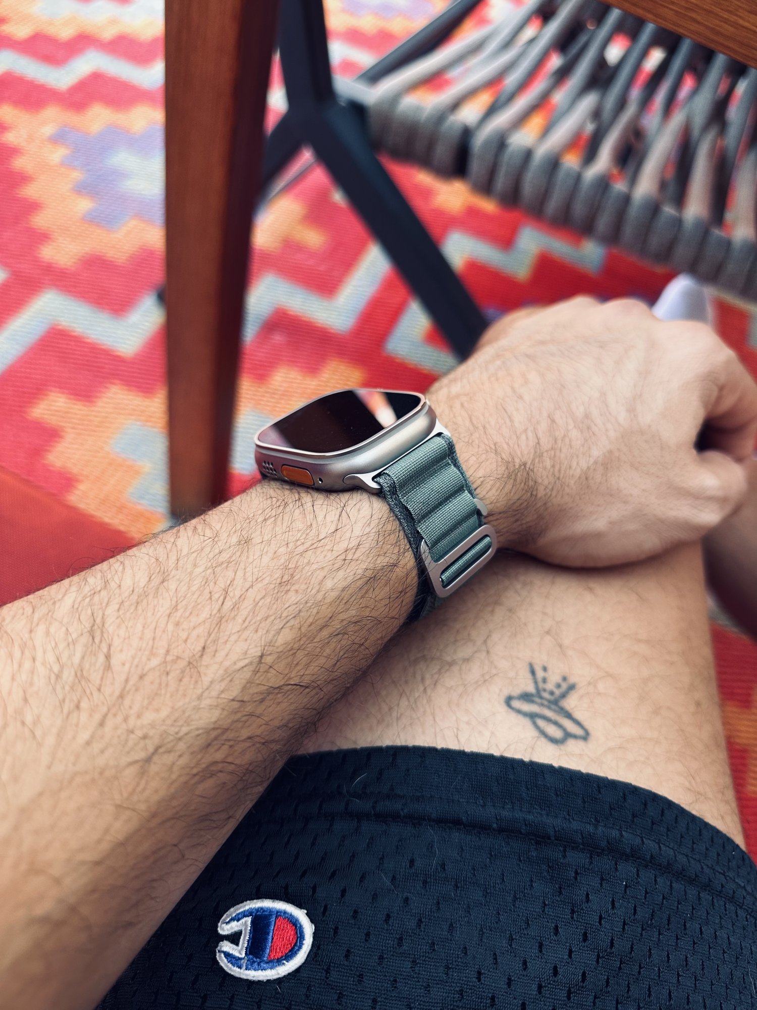 I actually don't like the alpine loop at all, maybe I got the wrong size, I got it in small based on their recommended wrist size, but it's really hard to put on and remove from my wrist, and with the band extended to maximum length, the titanium clasp/buckle thing kept knocking on the case of the watch, it didn't ding or scratch the case, but still I find it super annoying. I've taken the alpine loop off since, been using a grey sport band that came with a titanium AW, a light/dark grey sport loop that also came with one of my Ti AWs, and the SB link bracelet.