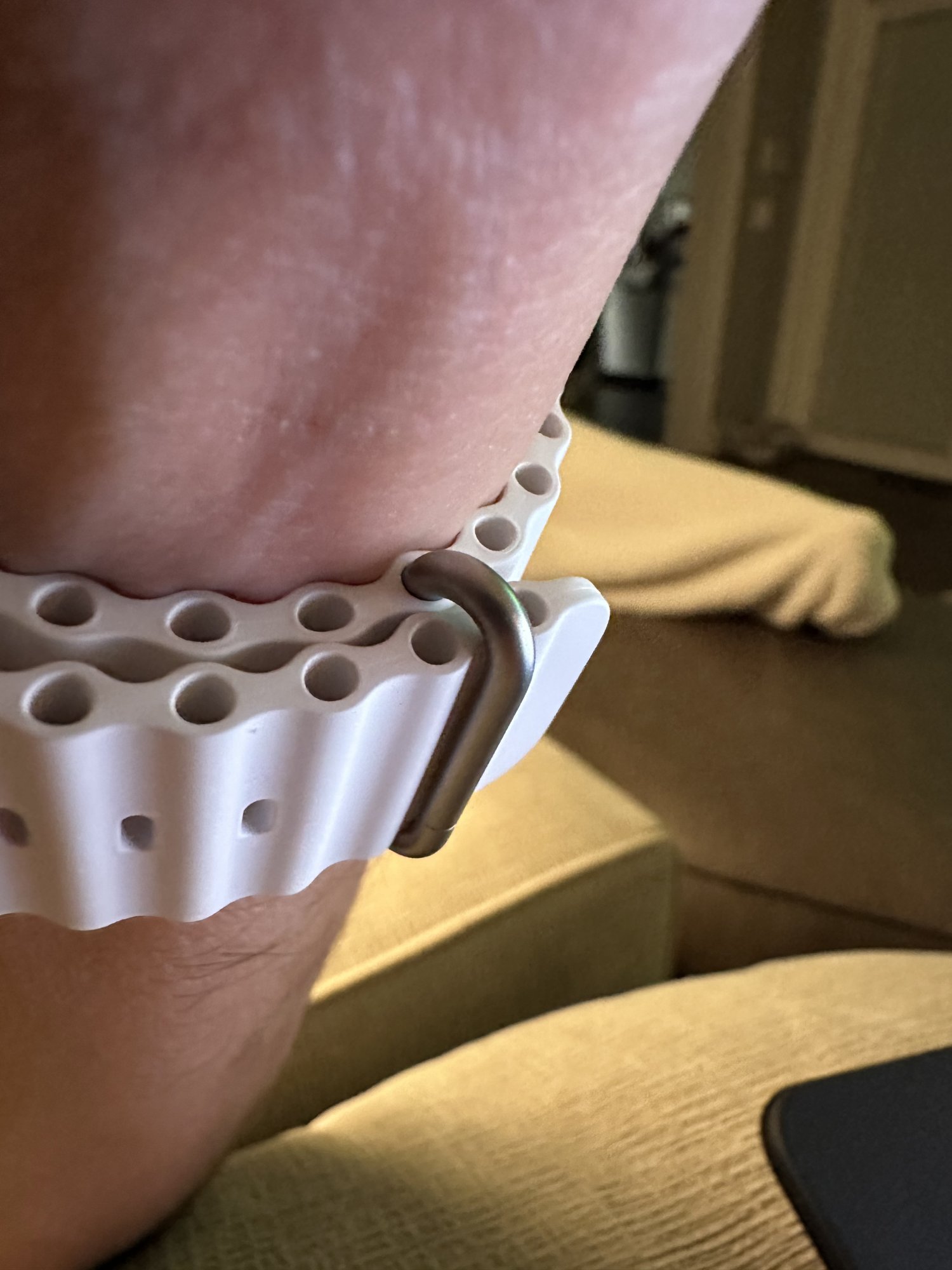 Oh so you have the side that comes apart on the outside? Lol Apple should have included directions with this band. 🤣I think you guys are using the Ocean band wrong. It’s easy to take on and off but you have to put the strap ring in the right spot, through the bands holes. View attachment 2080614