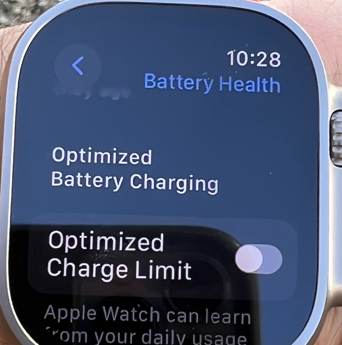 I have had this happen on my AWU2 since update to watchOS 10.5! The watch is 235 days old (since OCT23) and the battery is at 100% health. I wear it 24/7 except for charging (about every two days due to the sleep sensors needing a battery charge of >30%). My question to you is how long can you leave optimized charging turned off without affecting the life of the battery in general or for your use case? TIA!Well my Ultra 2 I been charging everyday but I discovered that the dang optimized charging was turned on and the watch would not go past 80%. I wish that Apple would would not turn that on by default every update it is really annoying. Every update of watch os 10 has done that. They will not leave that setting alone I turn it off then after an update it is turned back on optimize charging. Leave the settings alone. Rant over