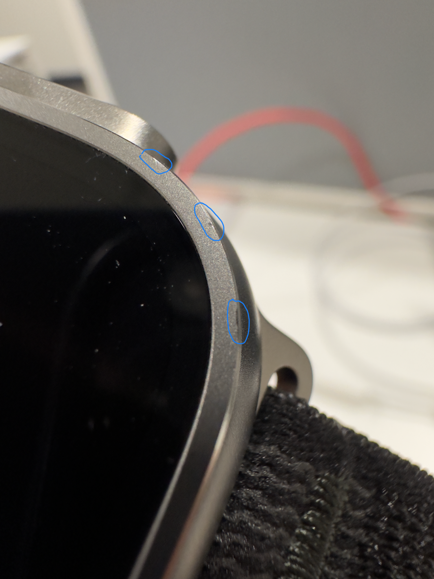 Received my AWU on Monday and noticed slight imperfection on the side of the front, on the titanium case finish, see photos attached. It is visible only in bright light, like sunlight or under a LED spot.