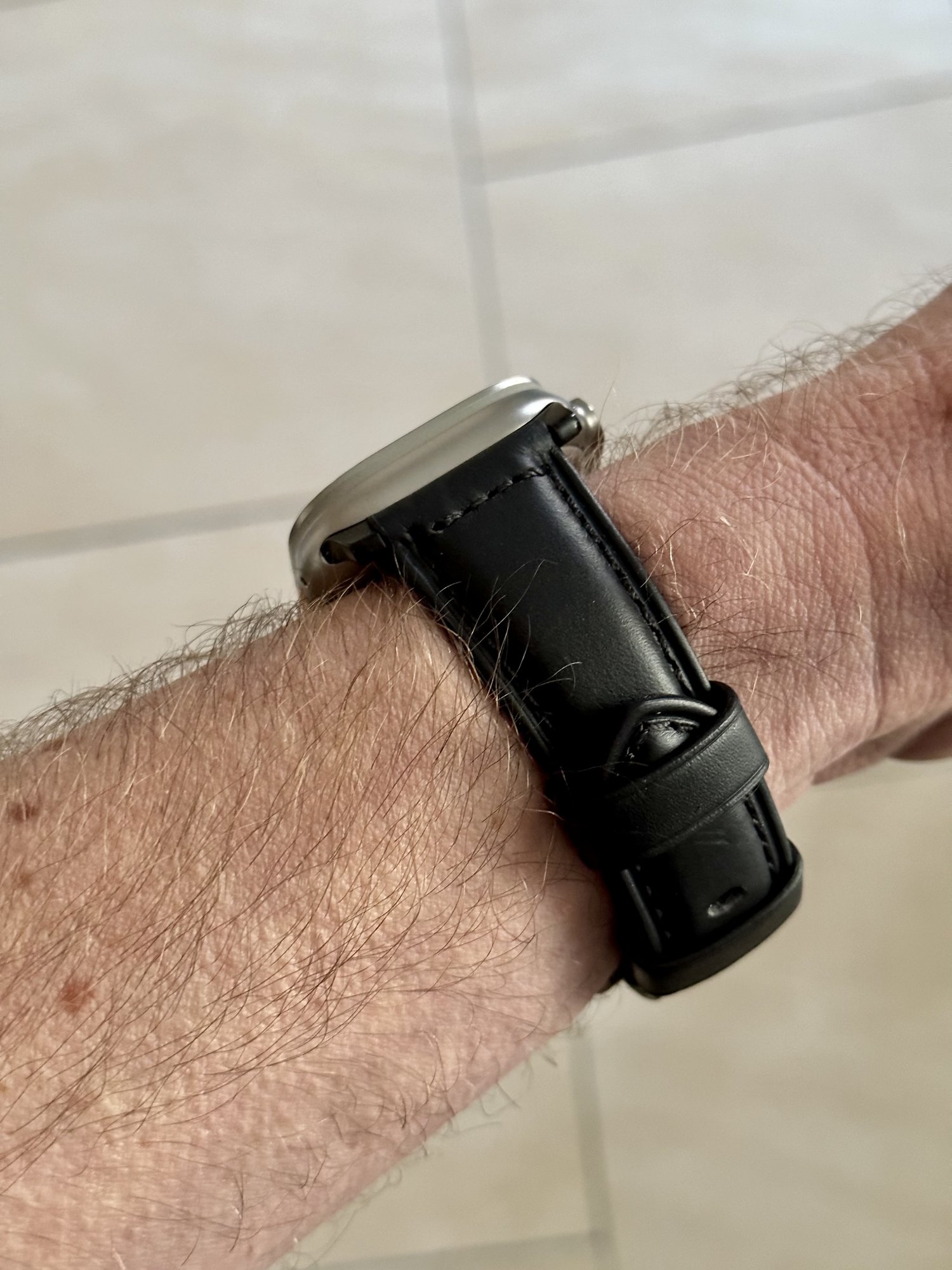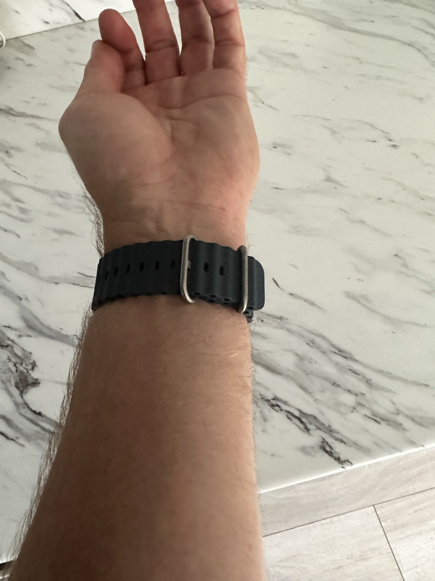 I got the Alpine loop as you can see. Initially I thought it’s gonna be tough to put the hook on and off but in typical Apple fashion, IT JUST WORKS! It took me less than a second to get the hook into the individual loop and took me about the same time taking it off. The fit is just nice for my small wrist. I’ve attached some front and barrel shots to compare. For some reason the front shots make the watch’s “lug to lug” length longer than it actually is.