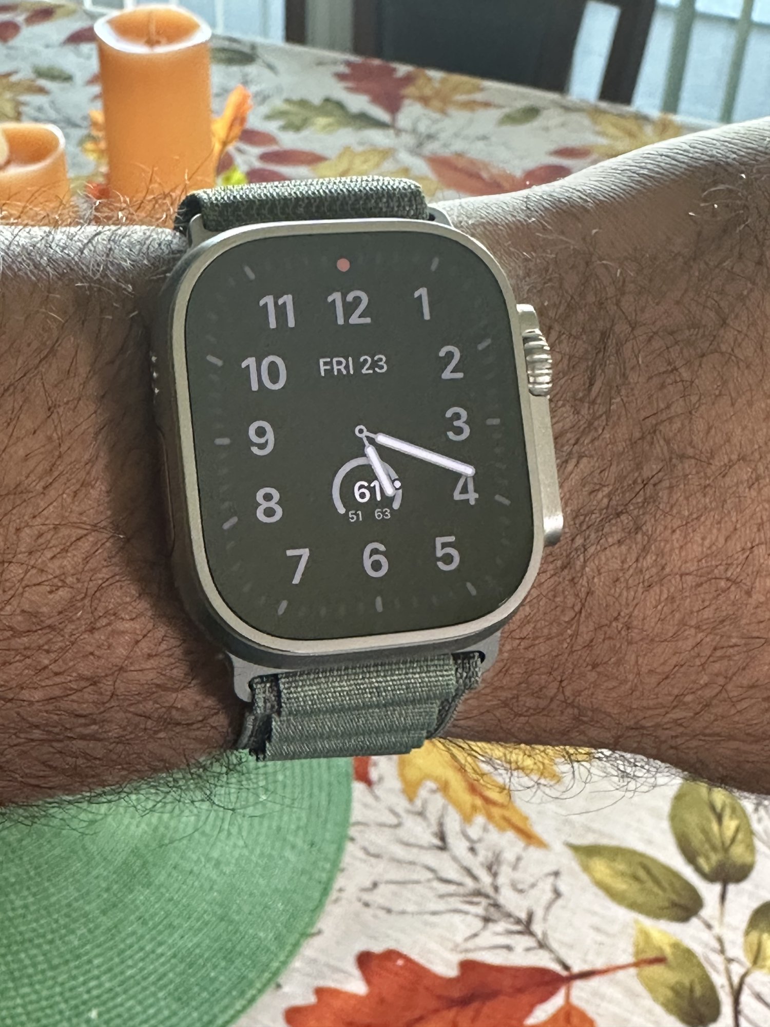 The advantages over the standard series 8 and series 7 make this watch well worthwhile. After wearing it for 11 hours I have lost 7% of battery life and with my Series 7 I would’ve lost 16%. Yes it has a bezel but then so did the series 0 and series 2. I have no doubt that Apple will reduce the basel next year to make the screen even larger. As well as a superior battery life, the screen is bright and I mean really bright and even AOD seems 75%as bright as a series 7 fully lit. The screen is only marginally bigger than the 7/8 but it seems a lot bigger because it’s a flat screen and certainly is easier to read. It’s fast as well and though it doesn’t have a new processor, Apple seems to have tweaked it because it’s lightning fast and responsive. I’m not a huge fan of the new bands and I wore it with a Nike 45 mm band tonight and it looked absolutely great. The crown feels a lot studier then previous watches and is easier to operate and the watch shouts quality. Yes it is thicker than other Apple watches but not distracting or as thick as many mechanical mens watches and it certainly doesn’t look out of place on my wrist and I had a lot of admiring comments from people in a bar tonight. Without meaning to sound sexist this is certainly a man’s watch because of its footprint. The speakers are a lot louder than the previous watches and the microphone is super responsive. Every time I lift my rest and say “hey Siri” it picks up every time and I didn’t have nearly that same level of success with the series 7. The new faces with the options for eight complications is fantastic and every face looks bigger.