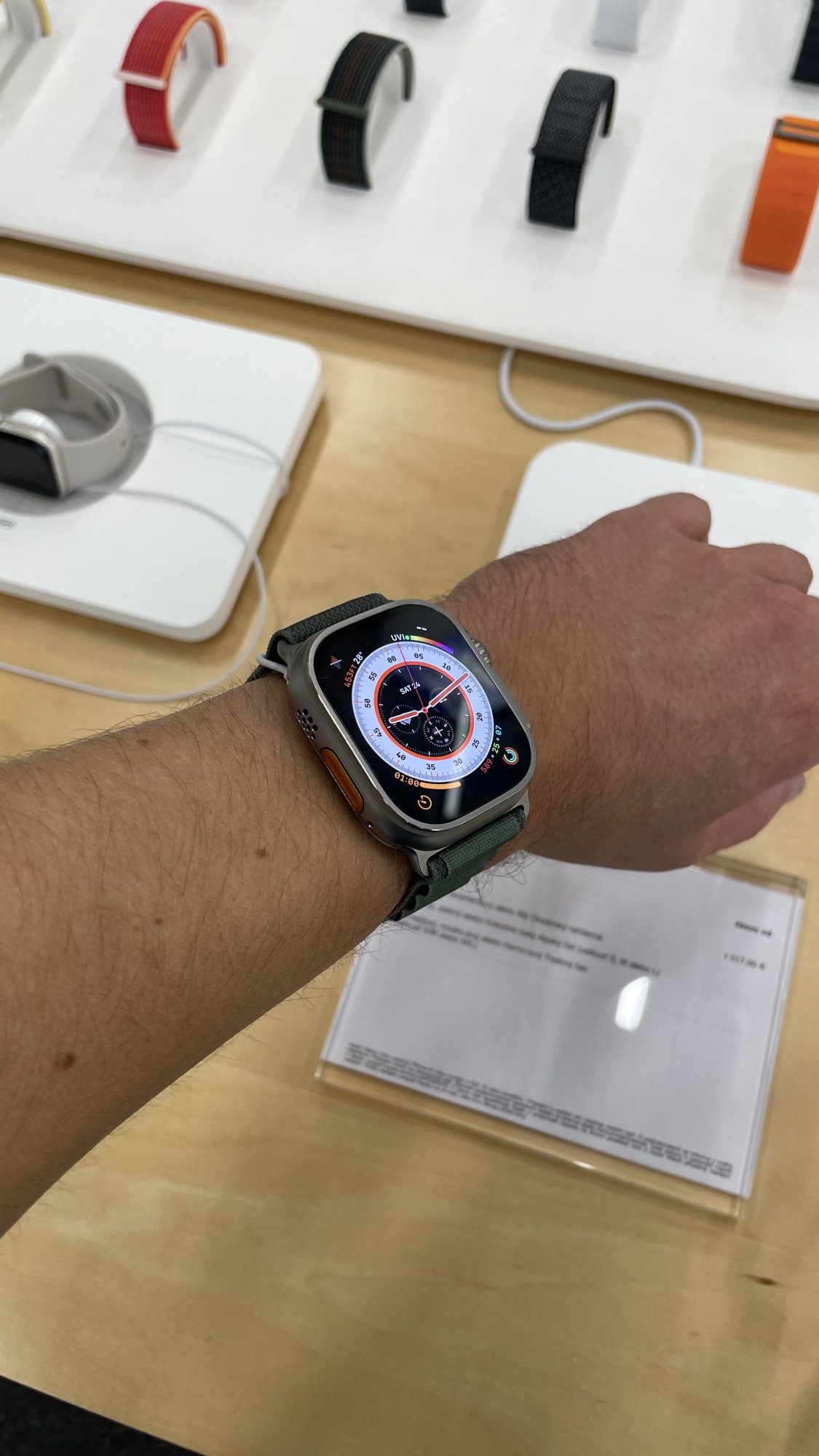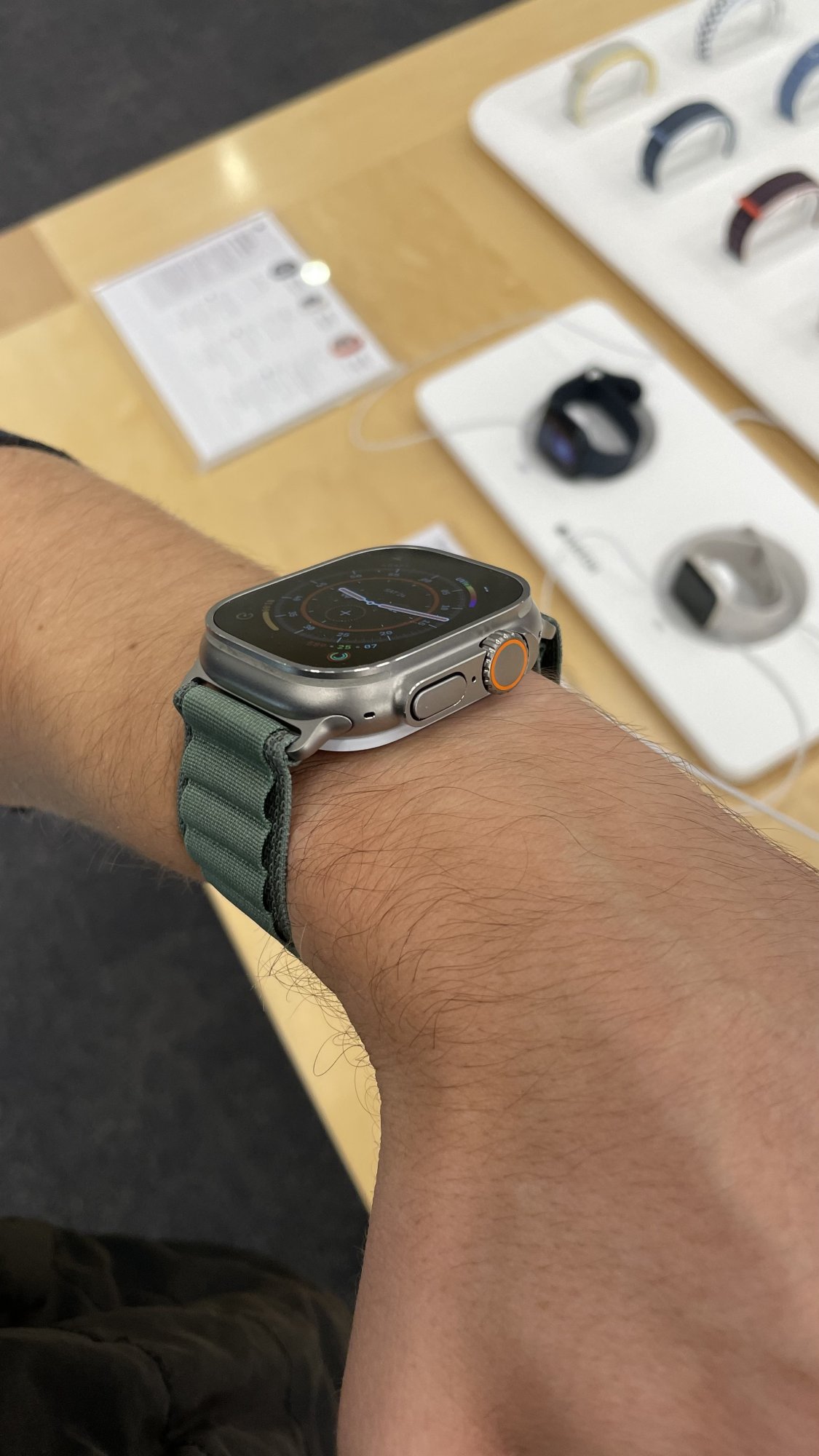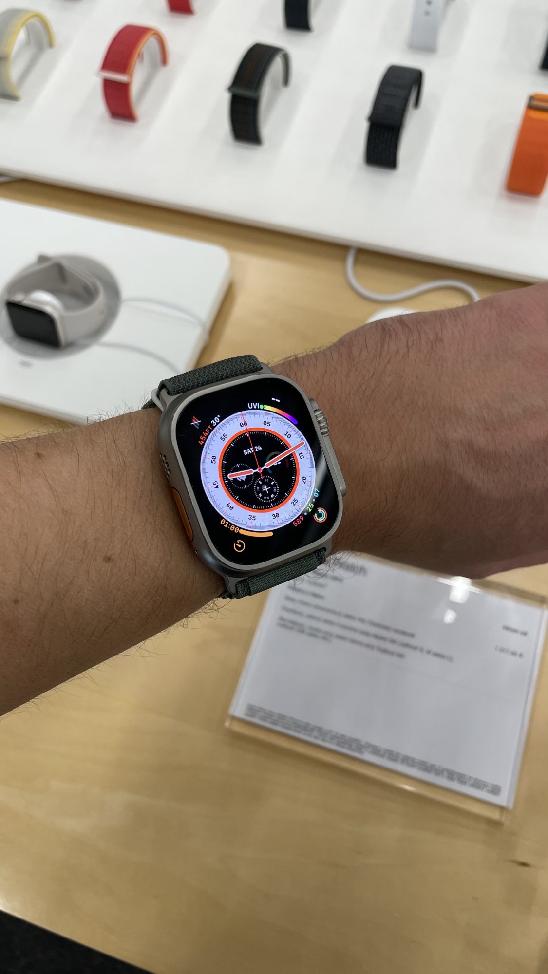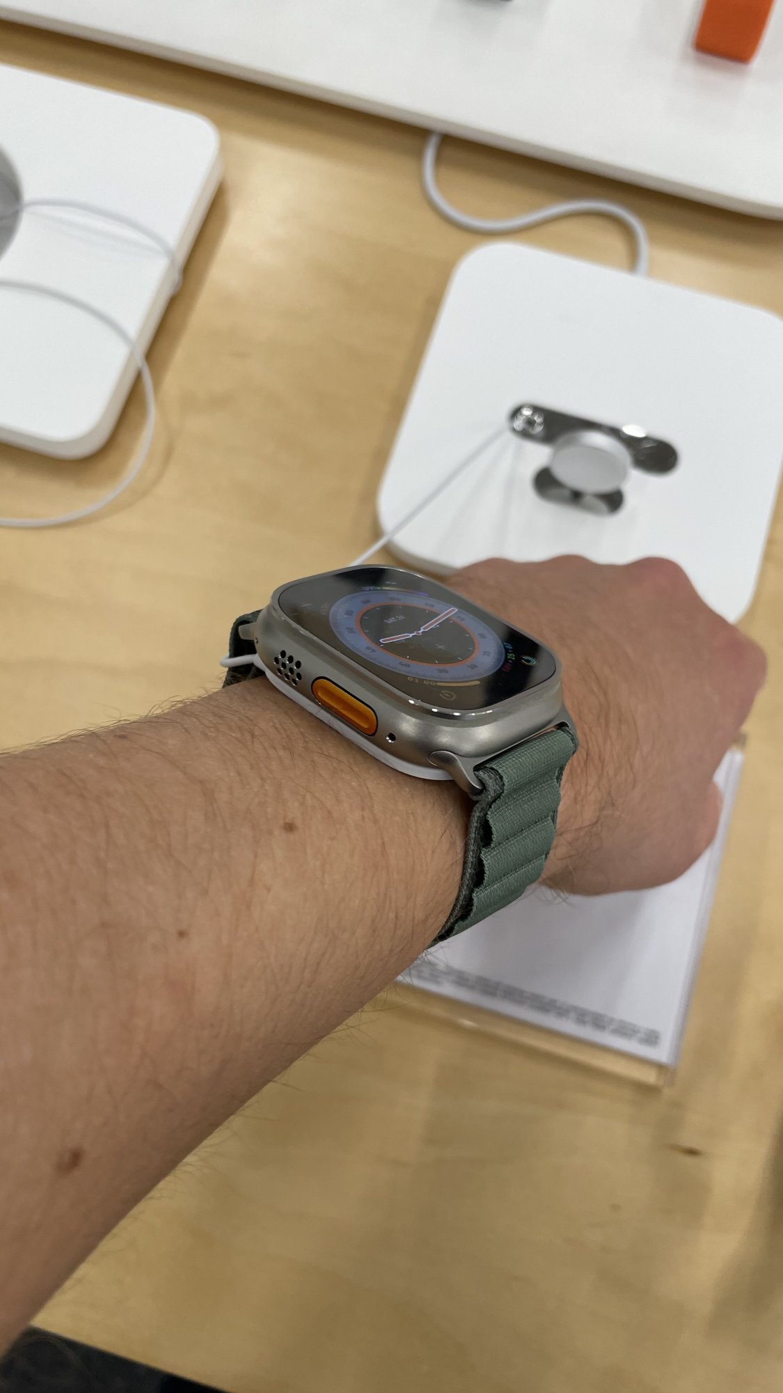 Think the Alpine band should be attached the other way around. According to Apple though.I absolutely love my Ultra! I preordered with the blue trail loop and it’s suppose to come in like a month and so I was able to grab one with the orange alpine in the Apple Store today! Also tried with the blue solo loop. 👍🏻 Sweet!