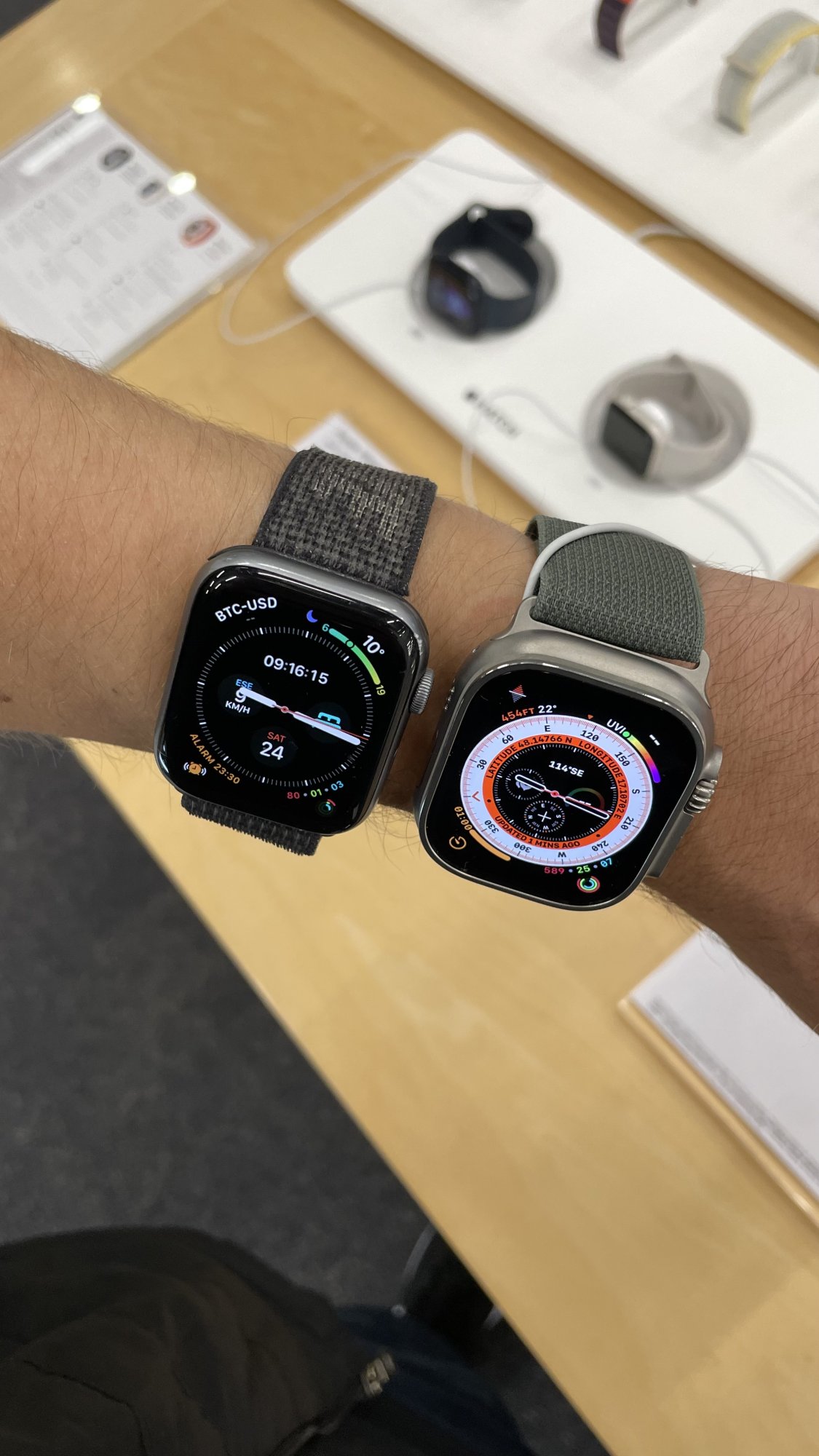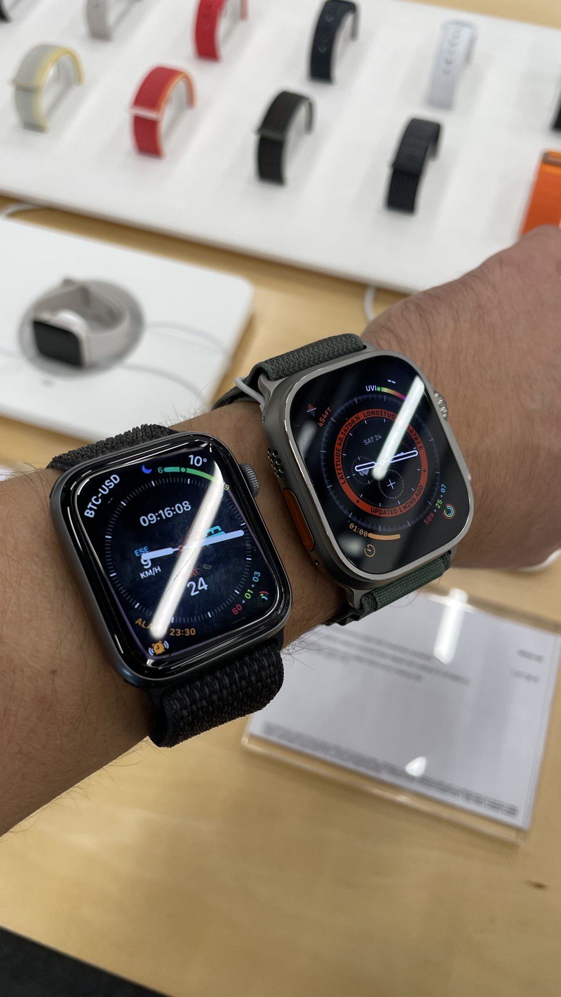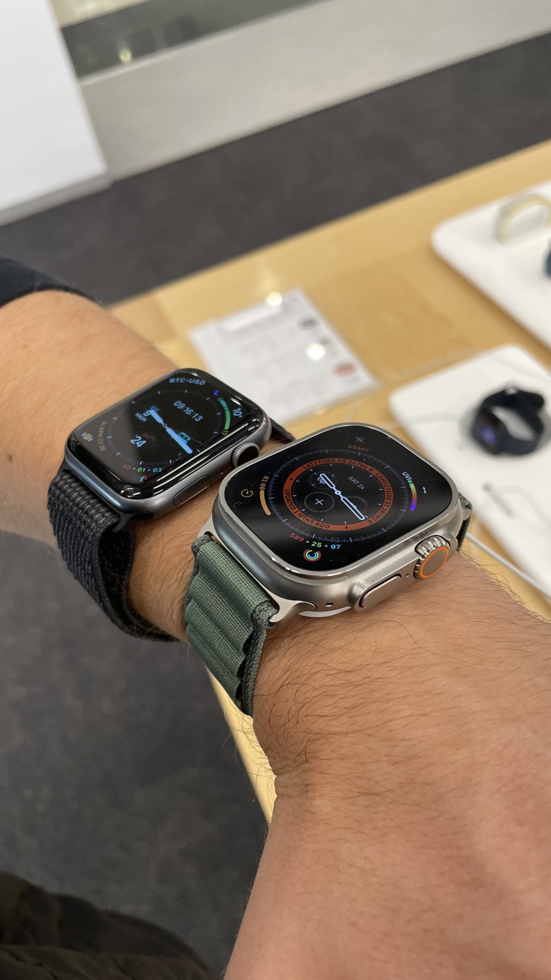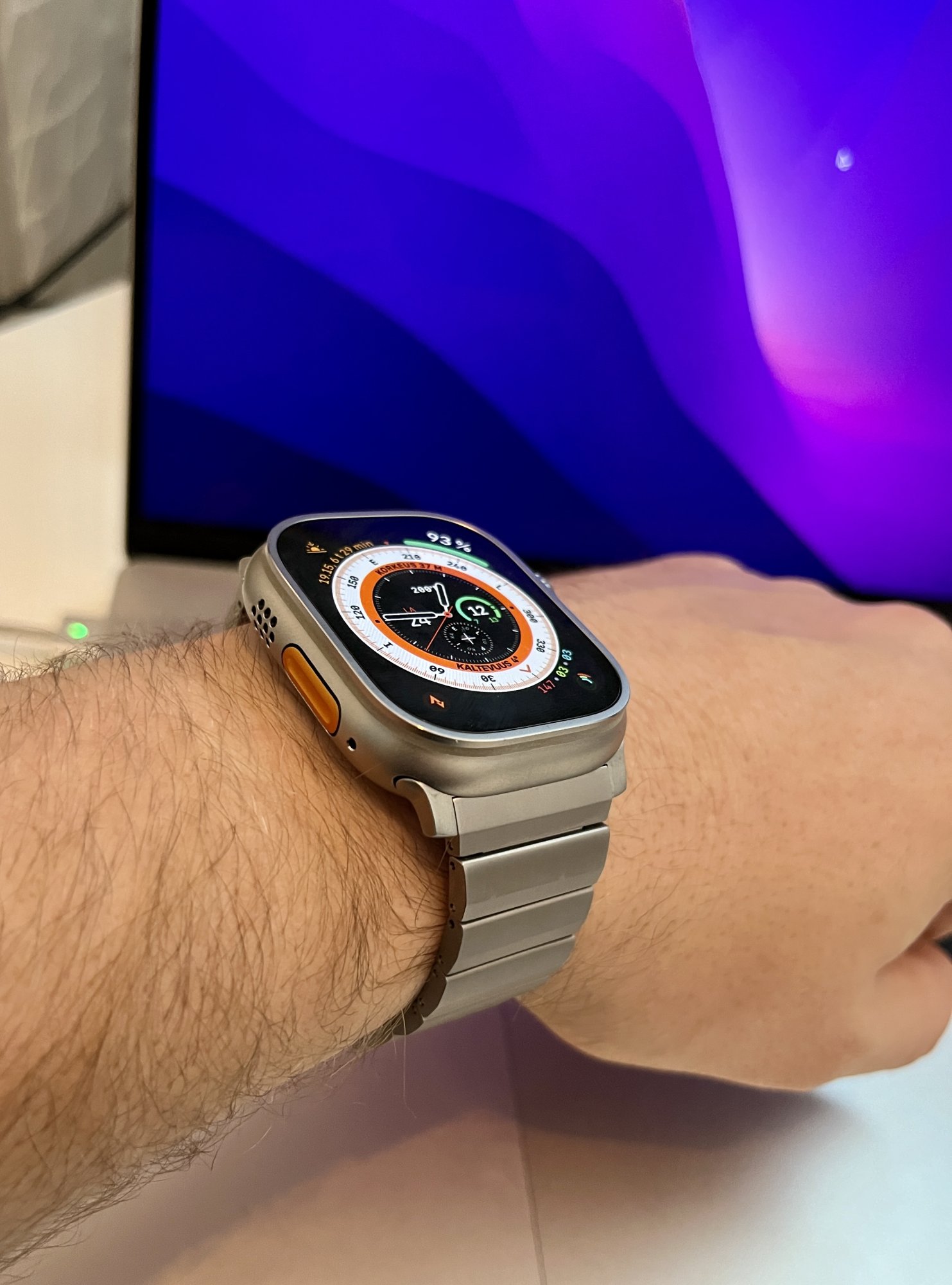 The advantages over the standard series 8 and series 7 make this watch well worthwhile. After wearing it for 11 hours I have lost 7% of battery life and with my Series 7 I would’ve lost 16%. Yes it has a bezel but then so did the series 0 and series 2. I have no doubt that Apple will reduce the basel next year to make the screen even larger. As well as a superior battery life, the screen is bright and I mean really bright and even AOD seems 75%as bright as a series 7 fully lit. The screen is only marginally bigger than the 7/8 but it seems a lot bigger because it’s a flat screen and certainly is easier to read. It’s fast as well and though it doesn’t have a new processor, Apple seems to have tweaked it because it’s lightning fast and responsive. I’m not a huge fan of the new bands and I wore it with a Nike 45 mm band tonight and it looked absolutely great. The crown feels a lot studier then previous watches and is easier to operate and the watch shouts quality. Yes it is thicker than other Apple watches but not distracting or as thick as many mechanical mens watches and it certainly doesn’t look out of place on my wrist and I had a lot of admiring comments from people in a bar tonight. Without meaning to sound sexist this is certainly a man’s watch because of its footprint. The speakers are a lot louder than the previous watches and the microphone is super responsive. Every time I lift my rest and say “hey Siri” it picks up every time and I didn’t have nearly that same level of success with the series 7. The new faces with the options for eight complications is fantastic and every face looks bigger.