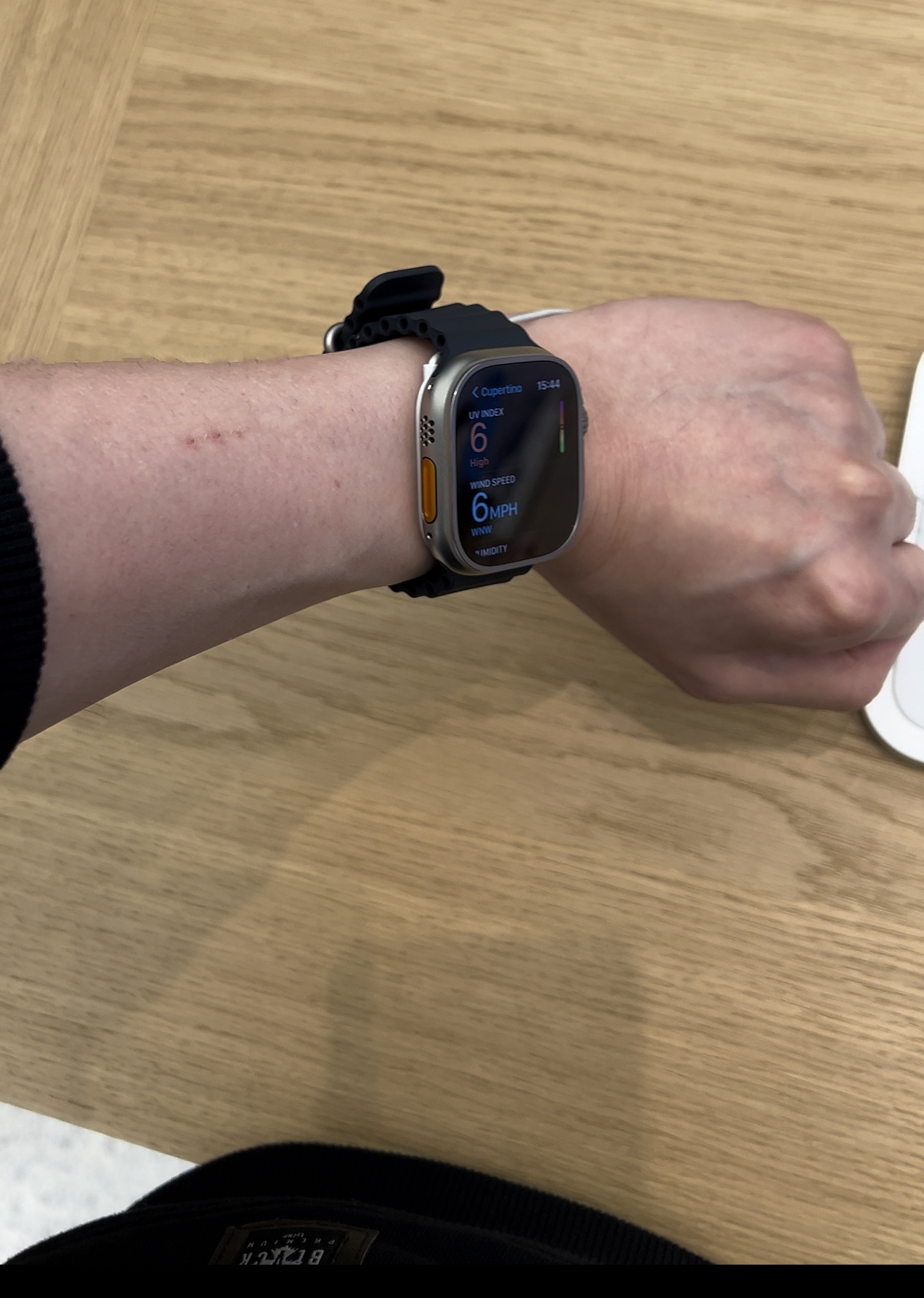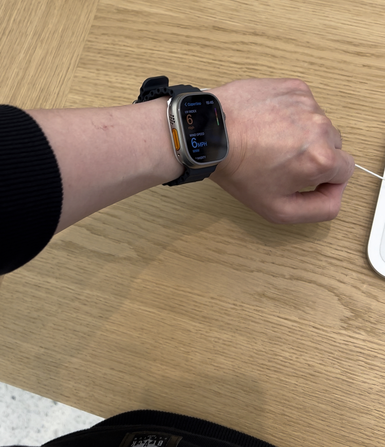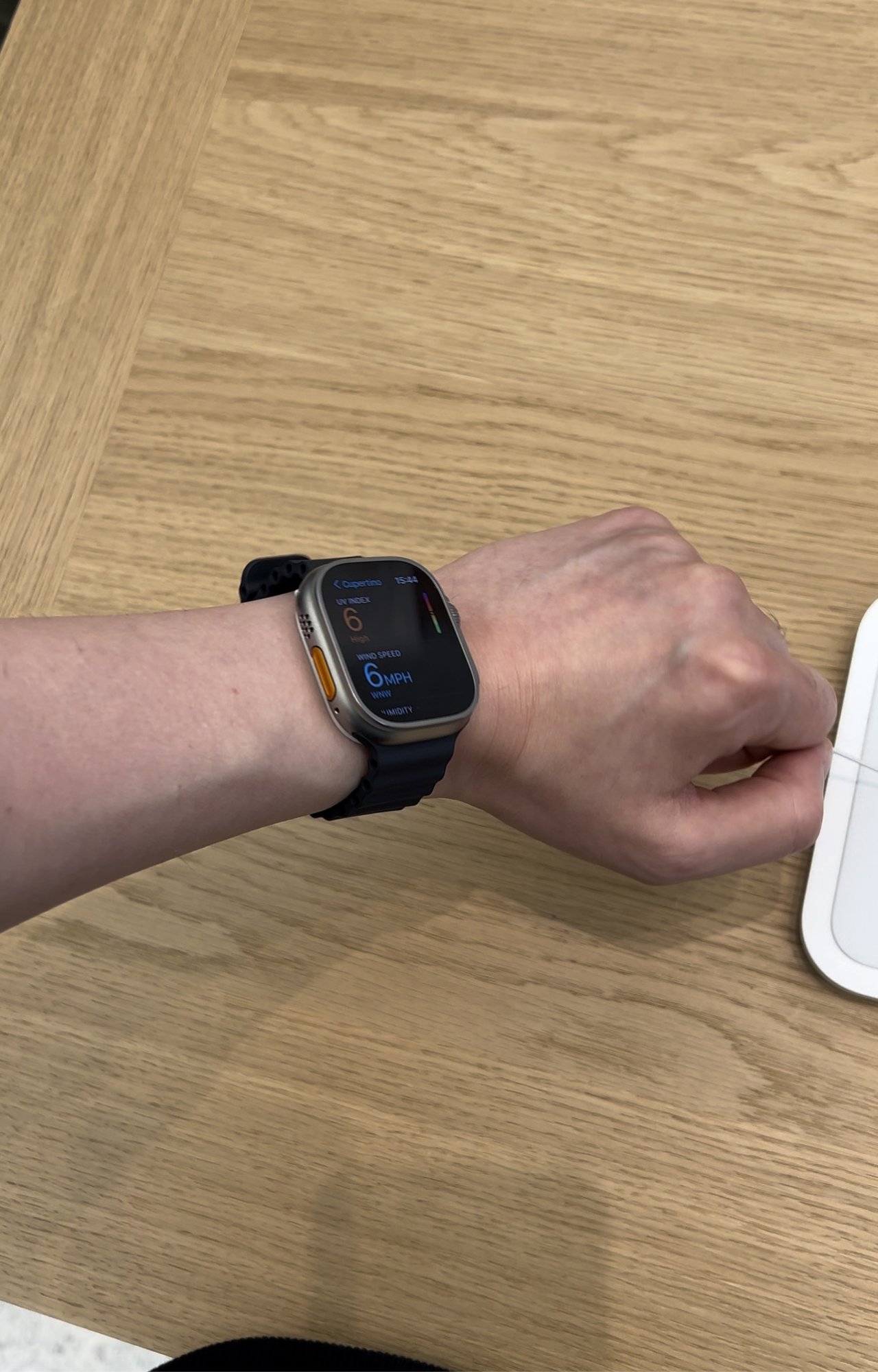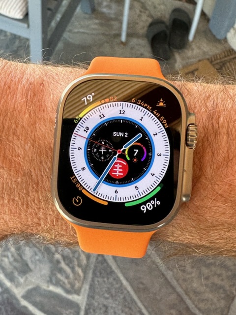 As for the band… I went from Orange Alpine Medium to Orange Alpine Large so I could hook it to the side instead of the bottom of my wrist to avoid it dragging on my MacBook all day. The size up accomplished that (and is easier to put on over my hand). The difference in size is smaller than I thought, so it’s barely off the bottom of my wrist, which is nice since I like showing the loops.