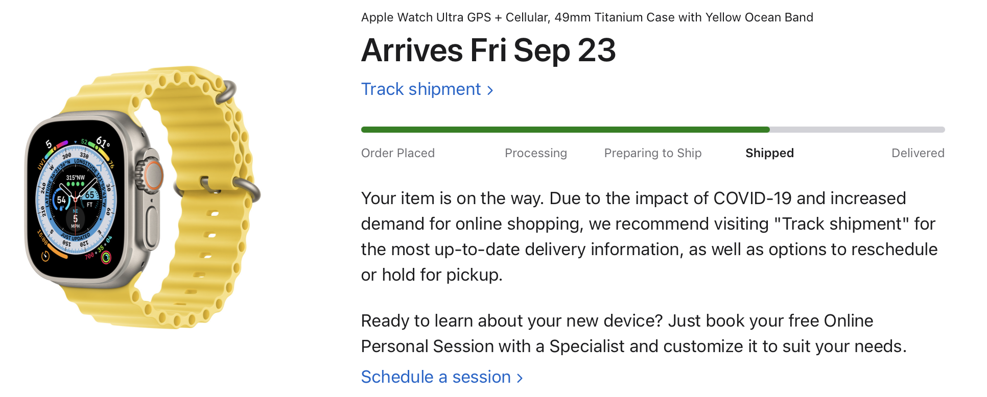 My Ultra appears to be in Louisville, KY with a 23rd delivery. This is a 0.6 KG package shown as “AI” in UPS My Choice app. .6 seems a little heavy. I wonder if that is my iPhone 14 PM? There is a 0.4 KG “AI” UPS package in Korea showing delivery on 26th.