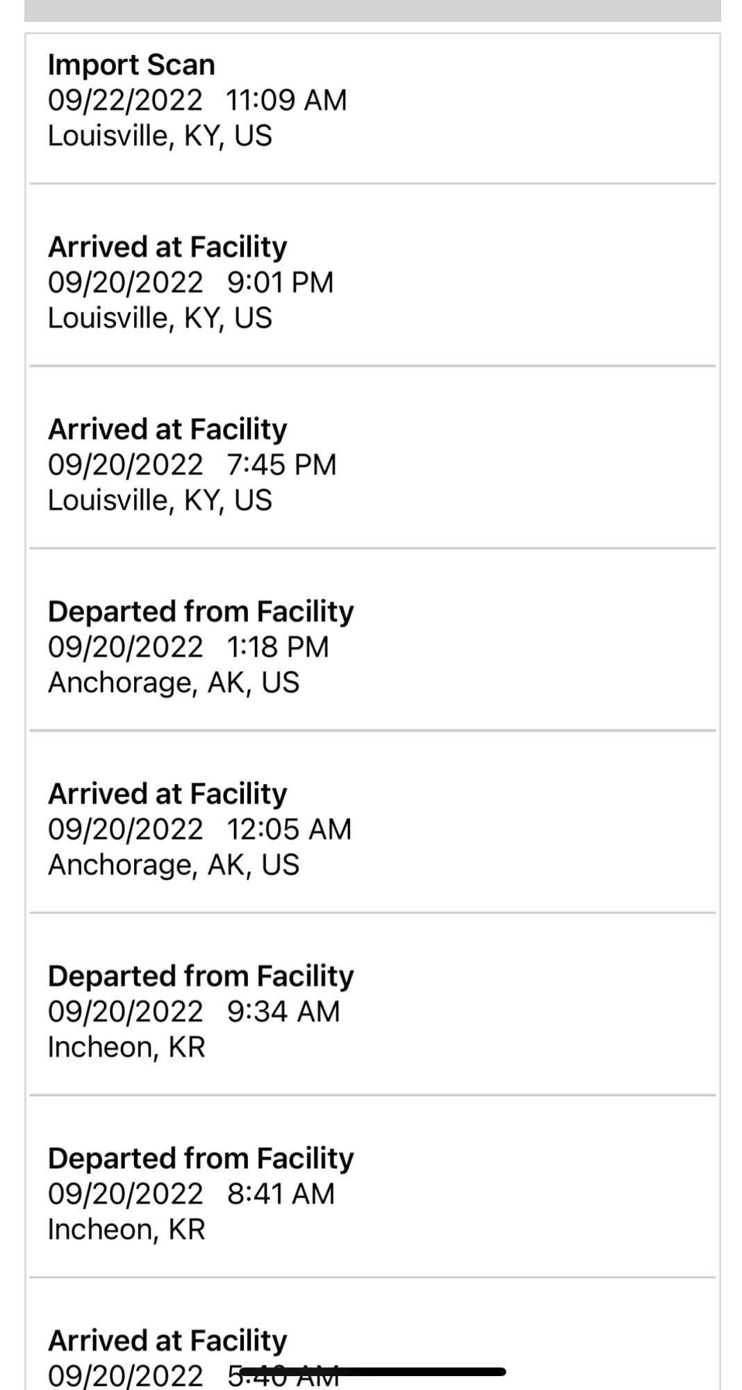 Dame to you buddy still waiting. It will happenMine arrived at KY on 9/20 9:01PM but still no import scan.