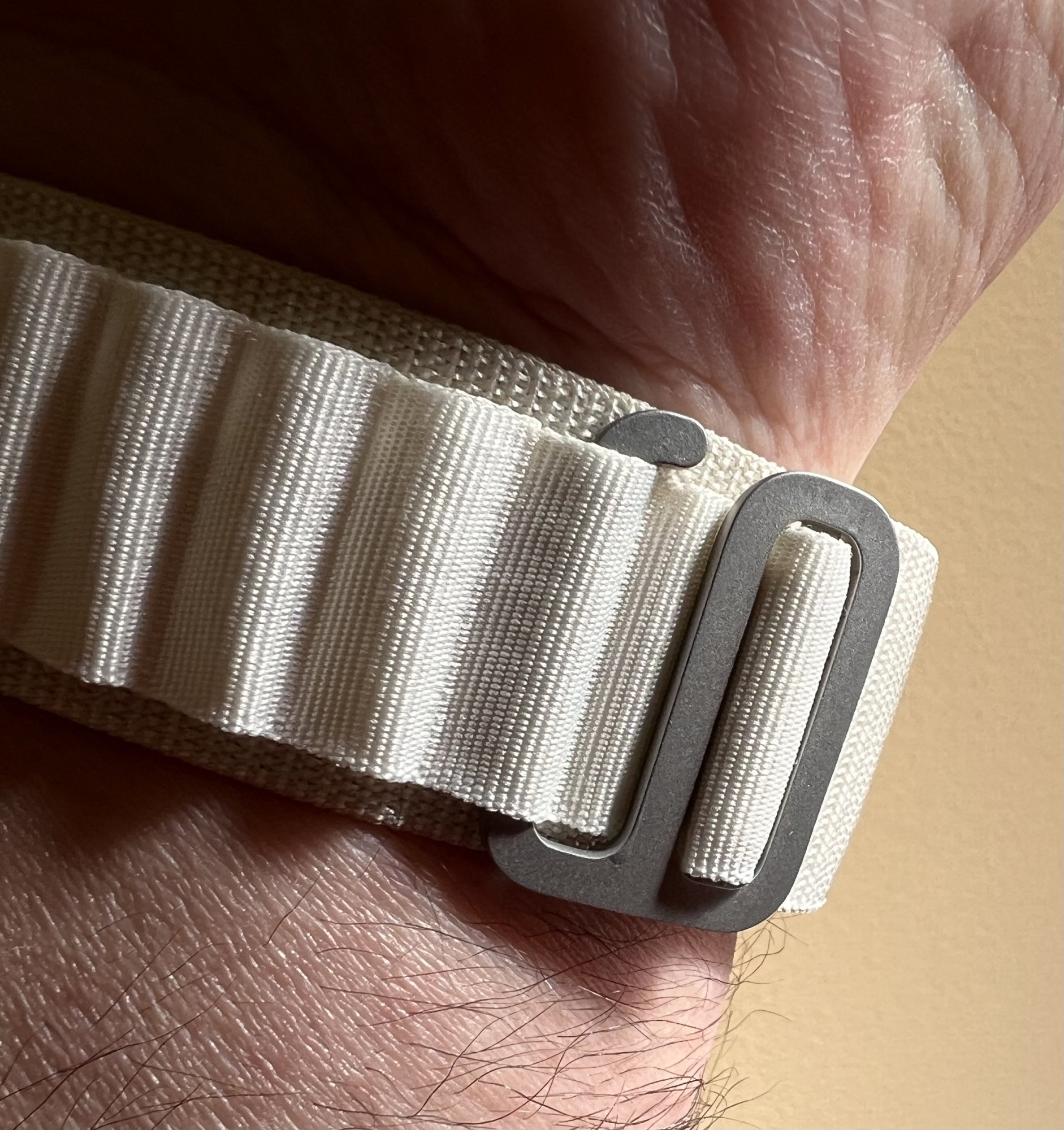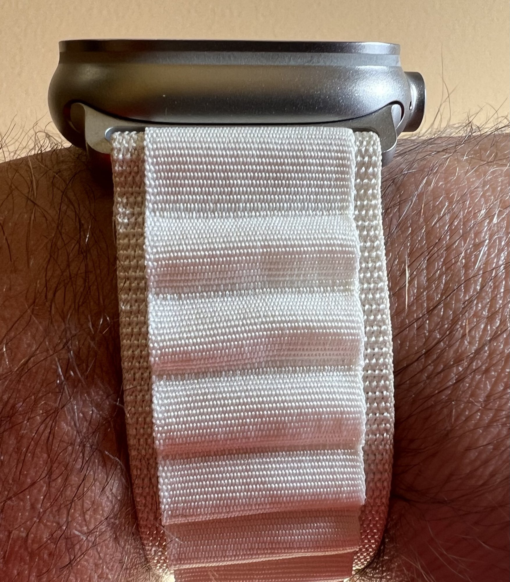 In the meantime, the 44mm/45mm Sport Loops (regular and Nike versions) fit, work and (IMHO) look great on the AWU, though I don't think they'd provide as much security, if you're doing things that might put a lot of inertial energy into your AWU (someone reported boxing while wearing an AWU). The Trail Loop has the same titanium strap ends that the other AWU bands have, compared to the molded-on plastic ends of the regular Sport/Nike loops, and it has a secondary "locking" arrangement.