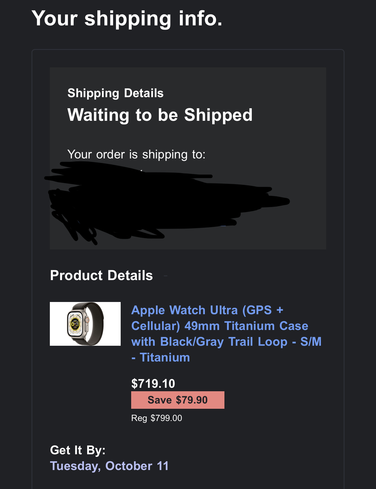 Thanks just placed another order for one lolJust a heads up Best Buy has Watches with black trail loops. I just ordered with delivery by next Tuesday. If you have the Best Buy credit card you can get $80 off too if you use it and promo code SEP23CCSAVE10. Also get $35 back in reward certificates.
