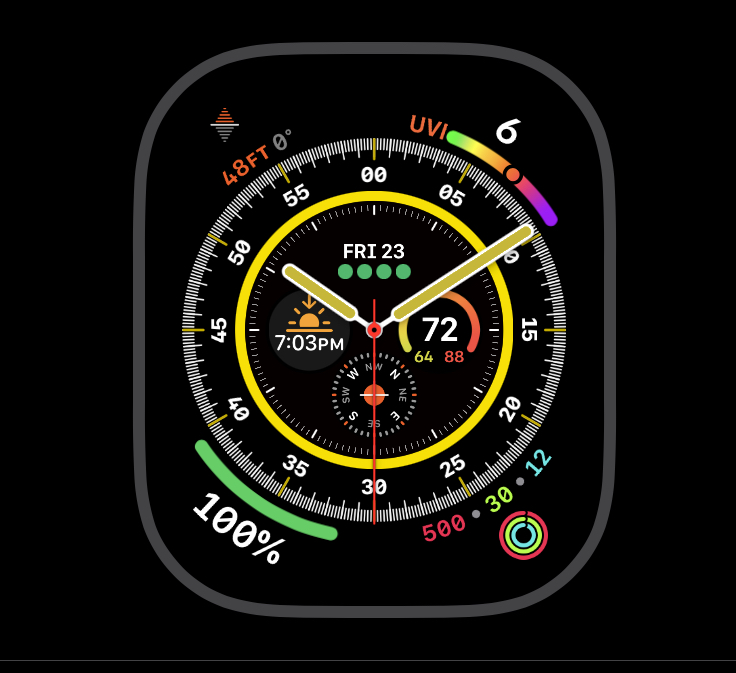 For anyone else who has the Apple Watch Ultra and has tried the Wayfinder face, is it working for you? Based on this Apple promotional video, the face has a compass that goes around the circular watch face and updates in real-time. It looks super cool, but mine doesn't do that. It's just a blank red circle. Anyone else?