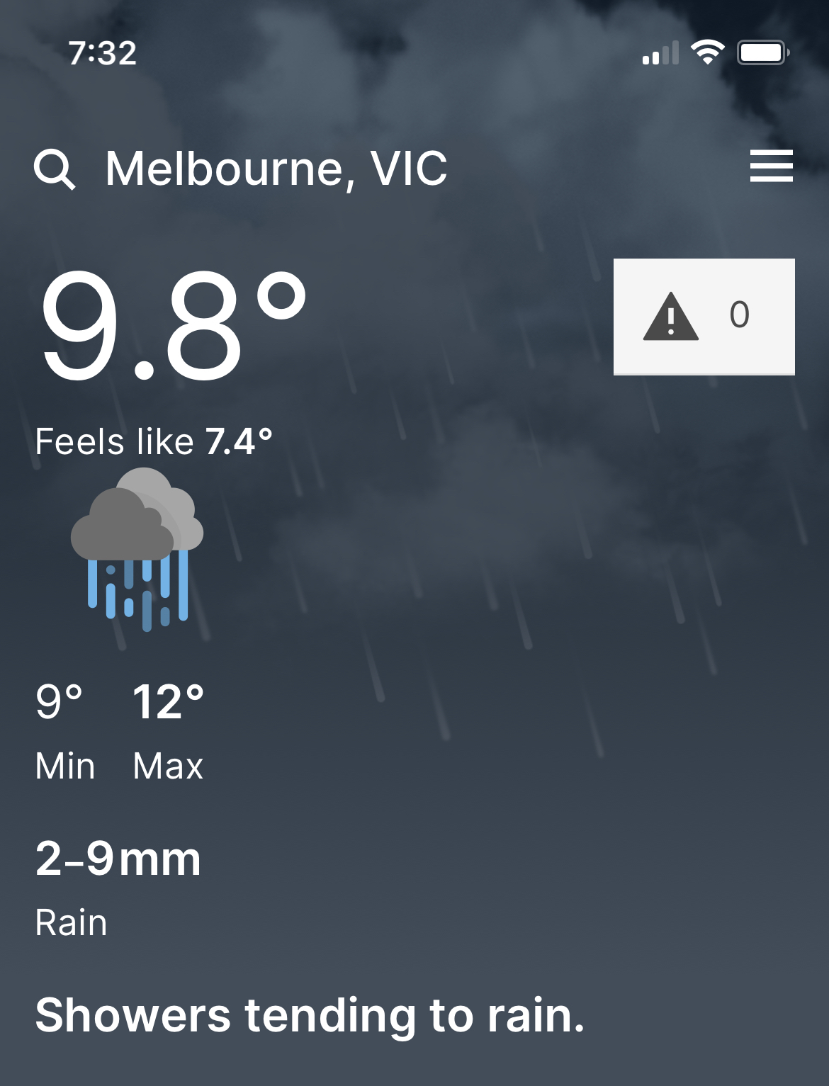 Came here to say thatThe only reliable source of weather information in Australia is from the Bureau of Meteorology (BOM). They have their own app. Delete Apple Weather and download the BOM app instead.