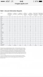 if you look at post 68 it shows you how many requests were actually made to apple last year. in most countries it was a single digit, in the US it was between 1000 - 2000 accounts. that breaks down to 1.6 - 3.3 requests per MONTH, per state. You think they are going after regular people?!?!?!