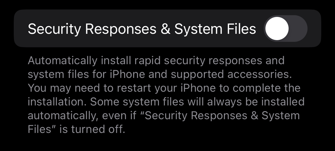 There is also a toggle for turning off automatic installation of Rapid Security Responses, which then allows them to be downloaded manually.