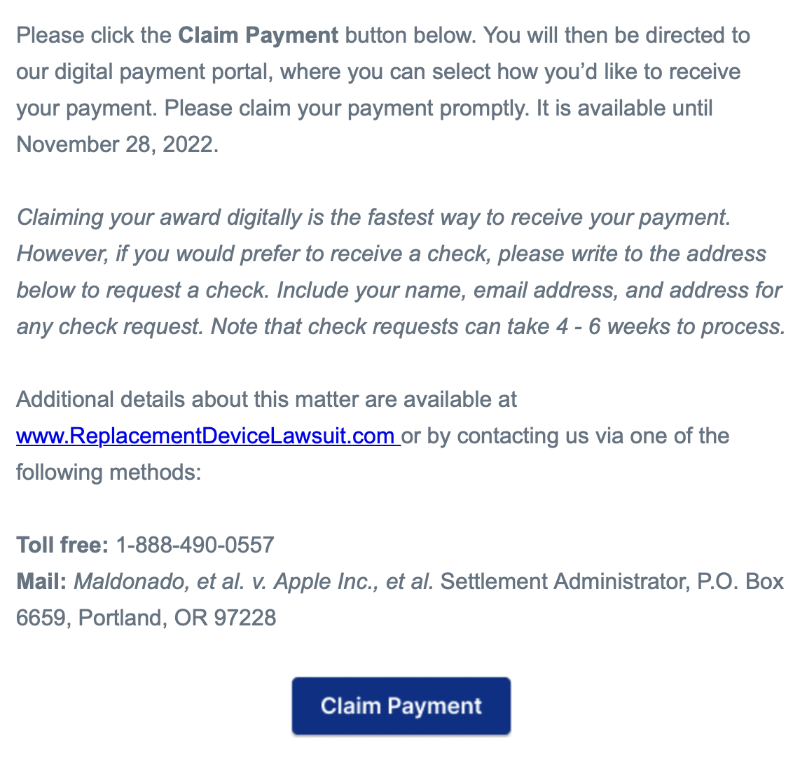 This begs the question: what other companies have been sued over this particular issue? Any at all? Because I know from experience that Apple is by no means the only company who does this as a matter of standard policy.