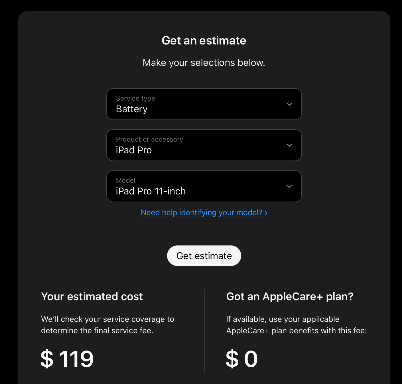 80% applies to everyone, if you don't meet the requirement, no replacement.View attachment 2359990I thought the battery change fee is $119, and that the 80% health requisite only applies to free AppleCare+ replacements? Also this price still shows up on the site for the 2018 iPad, does really not service these 2018s anymore?