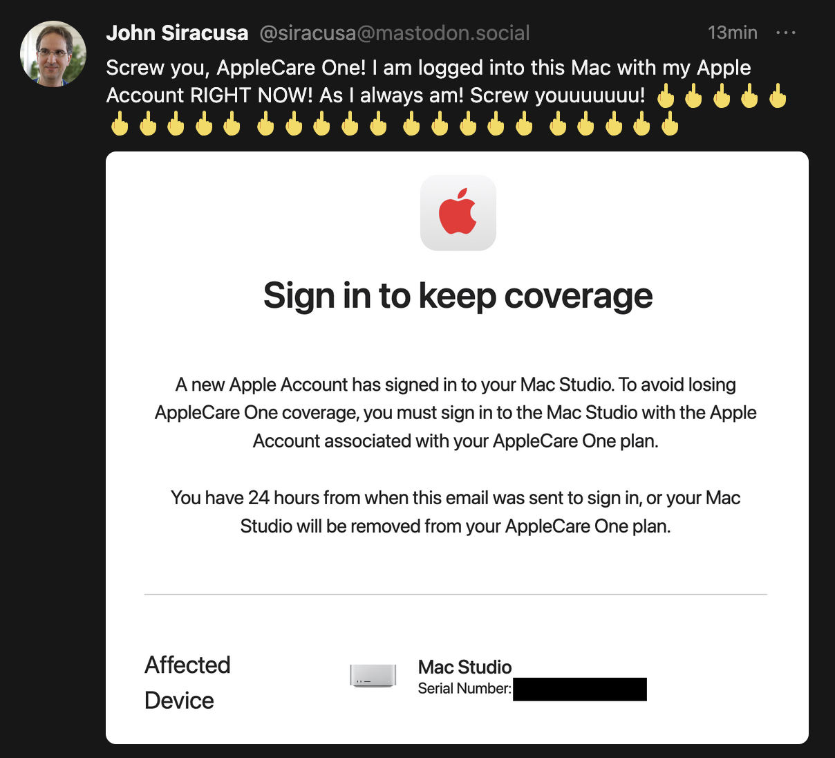 If anyone has successfully added their iPhone under iPhone Upgrade Program to AppleCare One, I’d love to know the magic phrase used to get to the right folks at Apple.