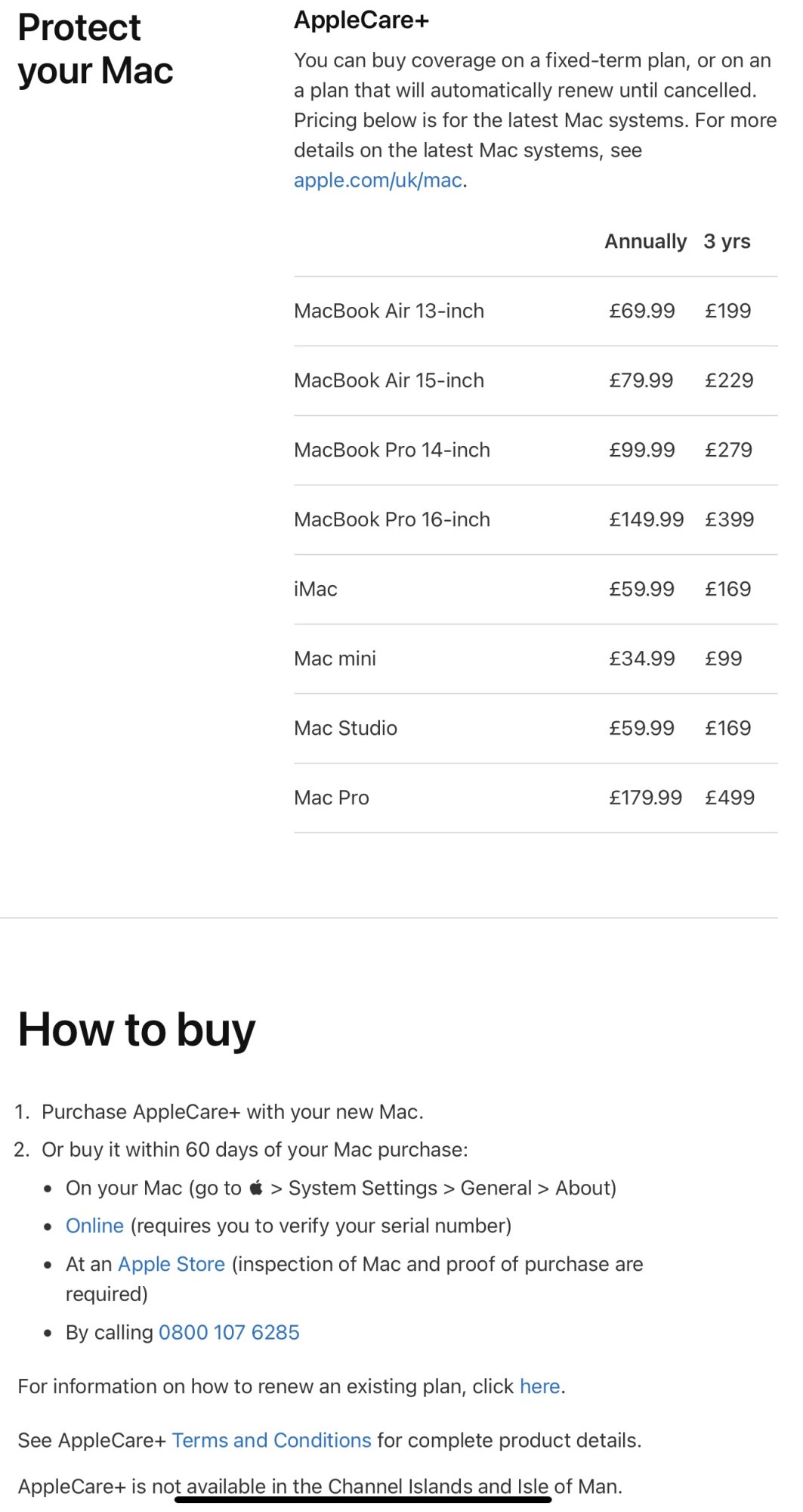 Can you still buy the Mac online (from Apple or non-Apple online stores), then after its delivered buy the 3-YEAR AppleCare policy on the machine itself, like you previously could?