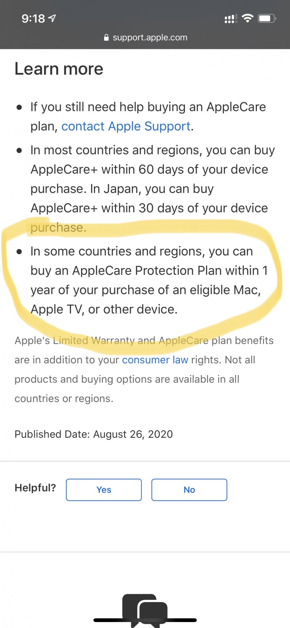 I realize https://www.bloomberg.com/news/arti...s-more-time-to-buy-applecare-after-sales-slow says otherwise but I don’t see it on Apples website.