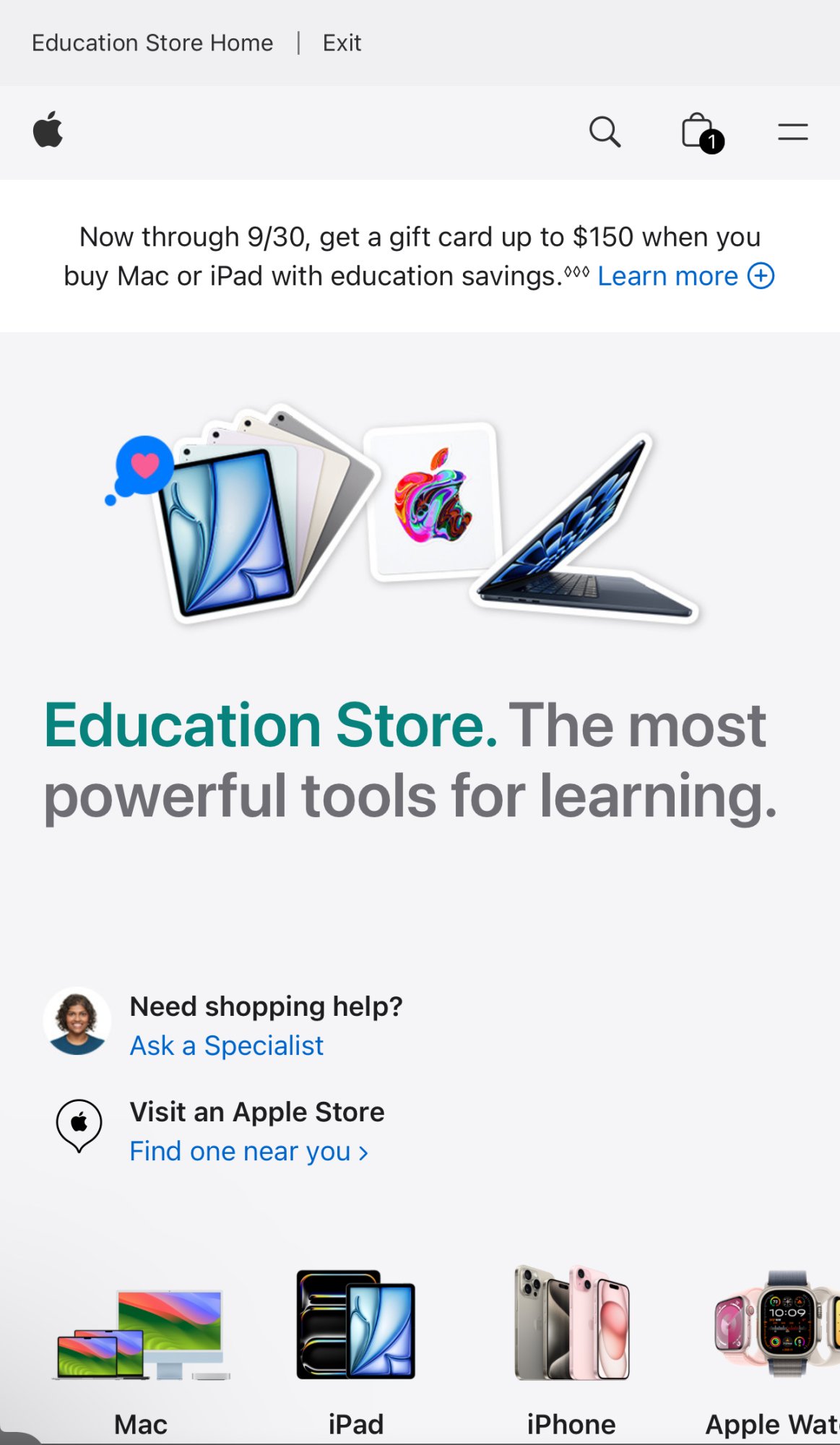 "Tomorrow, up to $150 gift card with Mac purchase (gift card with iPad as well) and 20% off AppleCare."