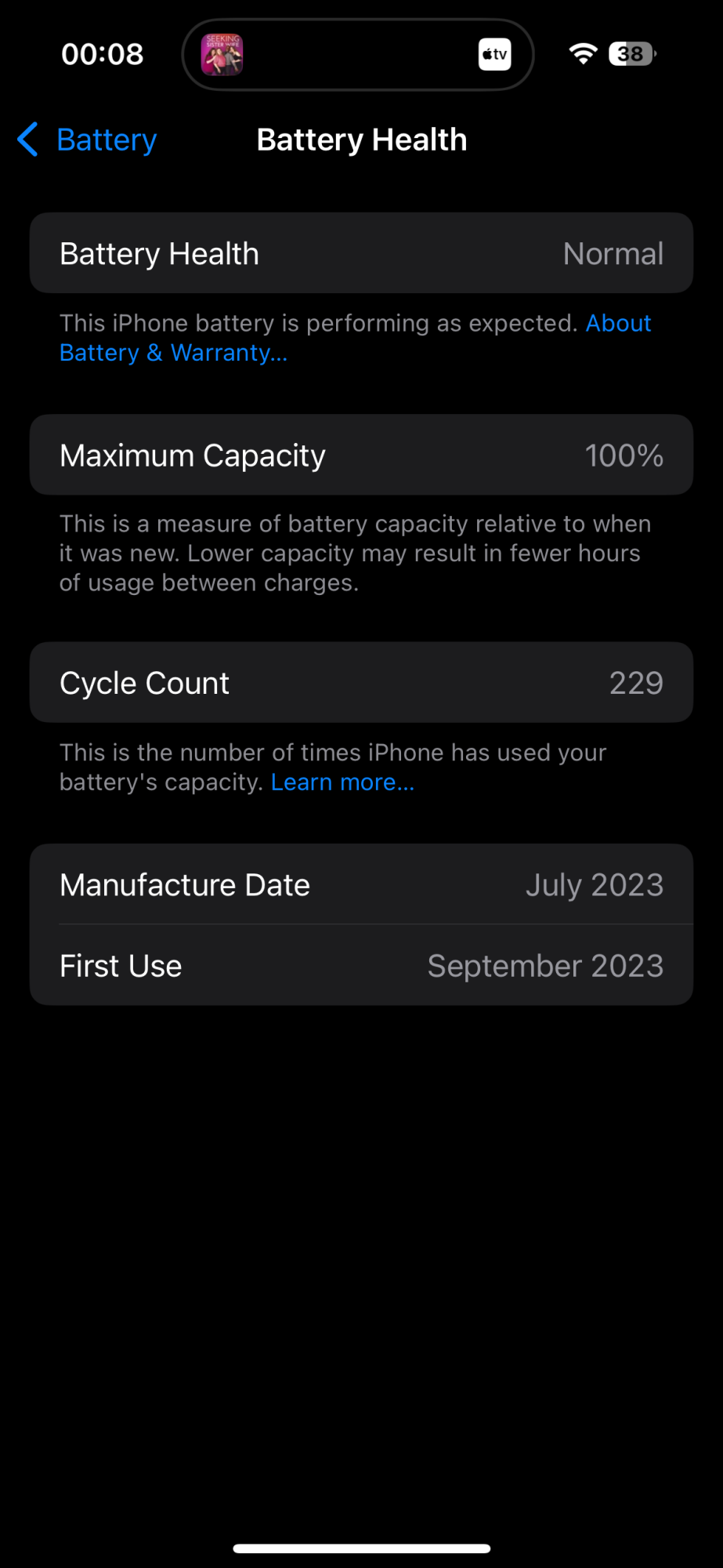 Maximum Capacity is still 100% and I have 139 cycles.