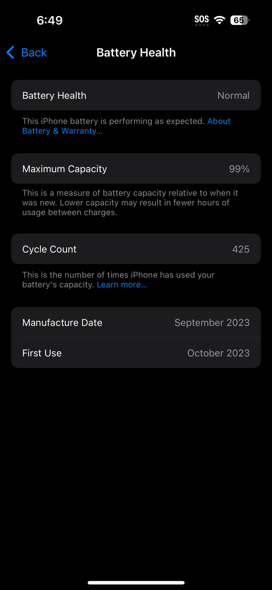 This makes me wonder if the fast degrading was caused by the newest iOS.My 15 Pro right now cycle count 425 and the battery health is 99% - iOS 17.3.1