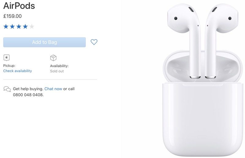 It's not clear when the AirPods went out of stock, but the earphones are listed as unavailable in countries that include the UK, Ireland, Germany, France, Czech Republic, Denmark, Spain, Italy, Luxembourg, the Netherlands, Norway, Portugal, Poland, Finland, Sweden, and others.