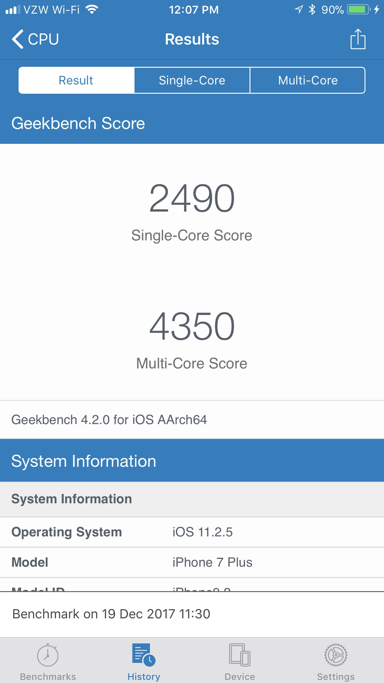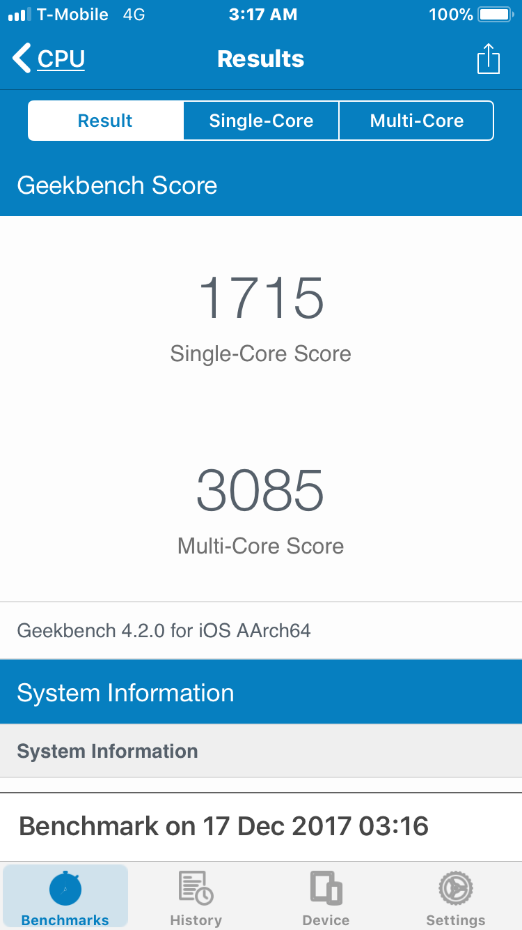I just tested an old iPhone 6s Plus running the latest ioS 11.2.1 with a less than stellar battery and the CPU benchmarks were above what Geekbench says is average for the device.