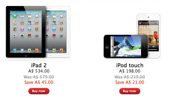 As reported, the discounts appear similar to last year, with expected discounts in the U.S. to be $41-$61 off iPad 2s and $101 off MacBook Pros, Airs, and iMacs.