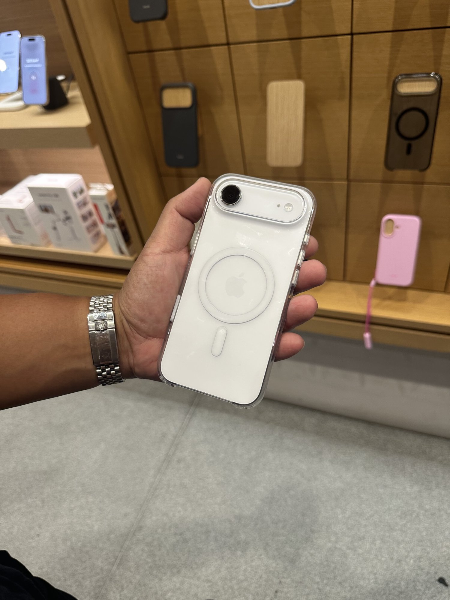 My Apple 17 ProMax clear case arrived. It is thin and lite as a feather. Some third party cases the buttons do not push easily. Apple’s will work perfectly.