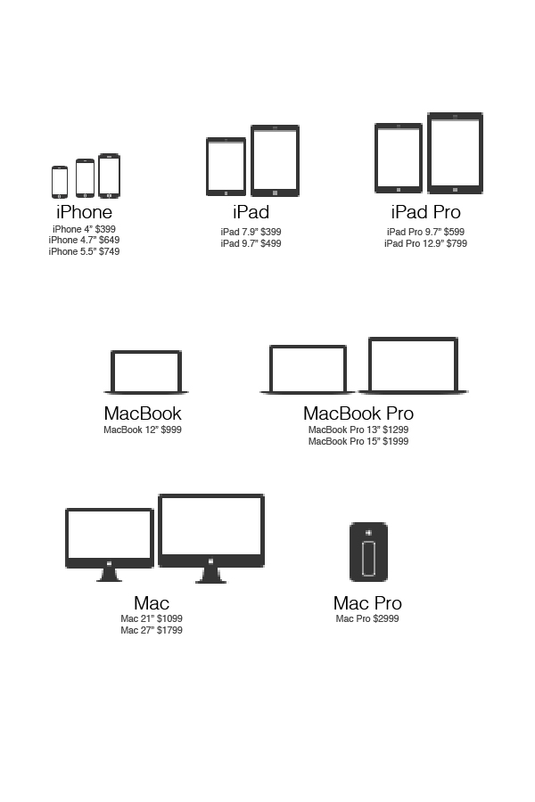 - iPad: 3 iPads, 3 Sizes