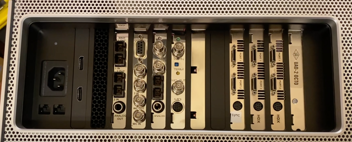 So say every Mac Pro was build to order with an M1 Ultra as the base, but the UFI is extensible in a way that allows you to fill up to (say) 8 extra slots with chips that are some combination of dedicated CPU, GPU, RAM or neural engine modules, all connected to the M1 Ultra via UFI. If the performance is there, there might not be too much grumbling about lack of support for third party components.
