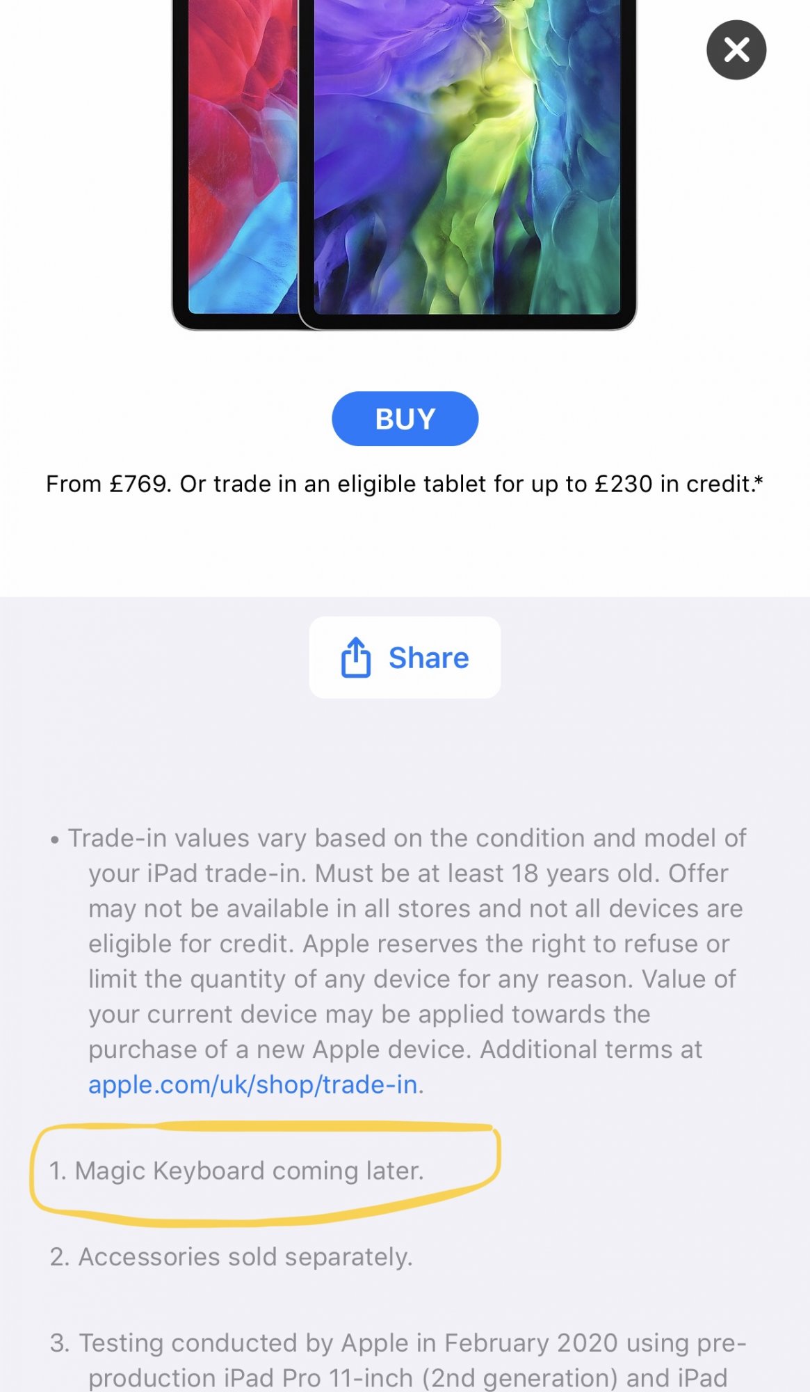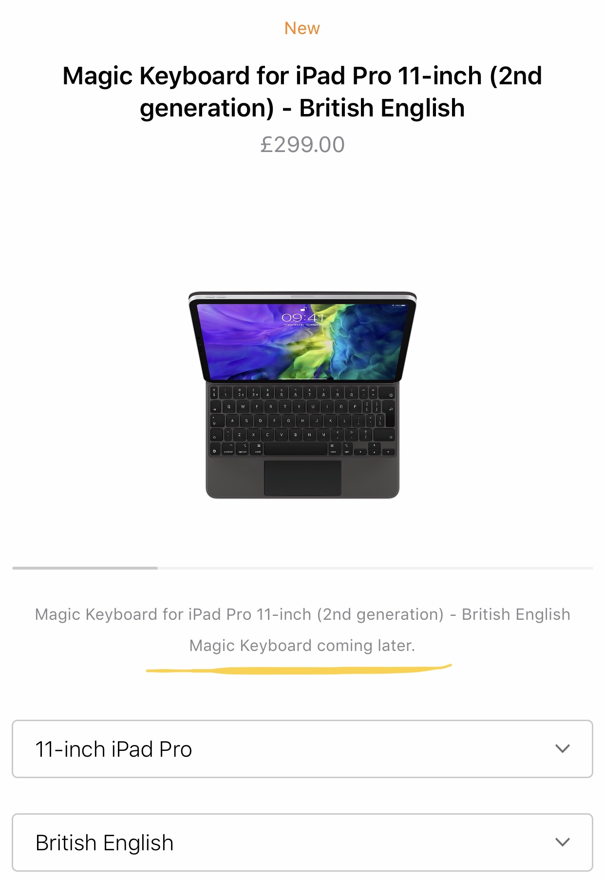 UK site now says "Magic Keyboard coming later".