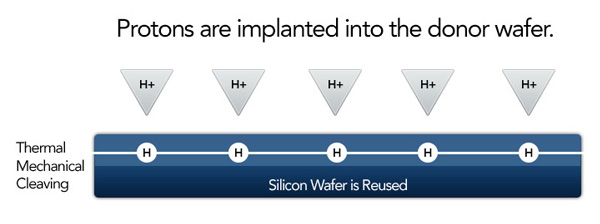 Readers: the beam doesn't slice the material. It implants the hydrogen protons to a certain depth, and when those are heated up later, that splits off a clean slice.