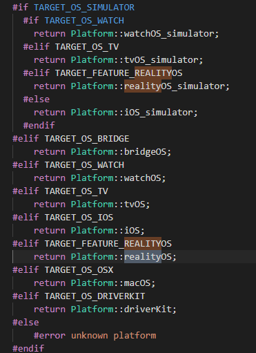 Probably because it is a superset of iOS (i.e. a feature). It can probably run normal iOS apps inside of it.The only thing that confuses me is that all other platforms are refered to as "TARGET_OS" and RealityOS is refered to as "TARGET FEATURE"