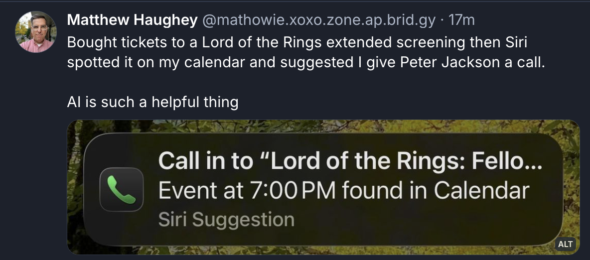 This was a good laugh, and certainly that’s the way Siri works on my iPad mini. But she’s much, much better on my M2 iPad Pro. I wonder why that is, and if it is a common phenomenon.When I’m scared that very soon AI will take our jobs, take over the world and become our masters I just ask some questions to Siri and then I feel safe again :