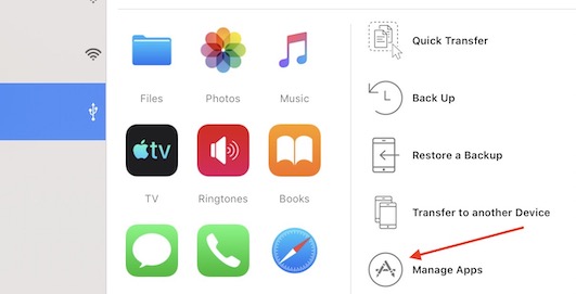 2)Launch iMazing and select your device connected via usb and click Manage Apps