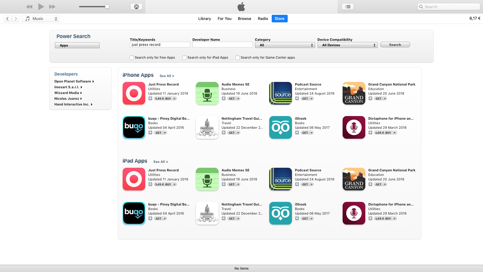Just type https://AppStore.com/<name of a known developer> then when the iTunes page appears, click PowerSearch (top left).