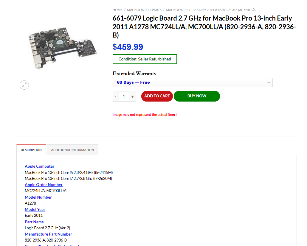 I Had chance to work with them few times, last time I ordered Macbook Pro Logic board for 2011 and they shipped it very fast. I spoke with Alex about this logic board he is very knowledgeable person he mantioned me that this year Macbook Pros dose have Graphic Card issues and he send me the right one.I actually already ordered my part and they called me to tell me it is on back order. The guy that called was very nice and knowledgeable so hopefully it works out.