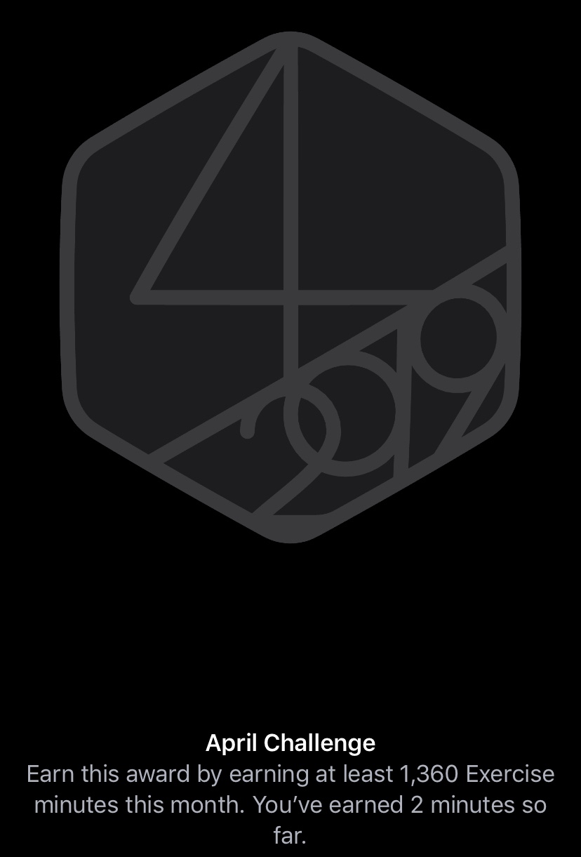 Just curious. Do you wear your watch only when working out? I ask because I think your April Challenge is based on all of your miles, not just when working out. If you get 10,000 steps in, you should be well over 5 miles ... but then again, I don't know how tall you are.Is this for real? Walk or run 116.2 miles (3.8 miles/day). Not sure what it's thinking as most of my historical workouts are weight training with a few walks/runs on non-workout days.