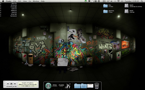 Kobhens icons, with stacks icons and Drives, as on my wallpaper shot above. I made a slight change to the stacks icons so you can easily tell stacks from regular apps..