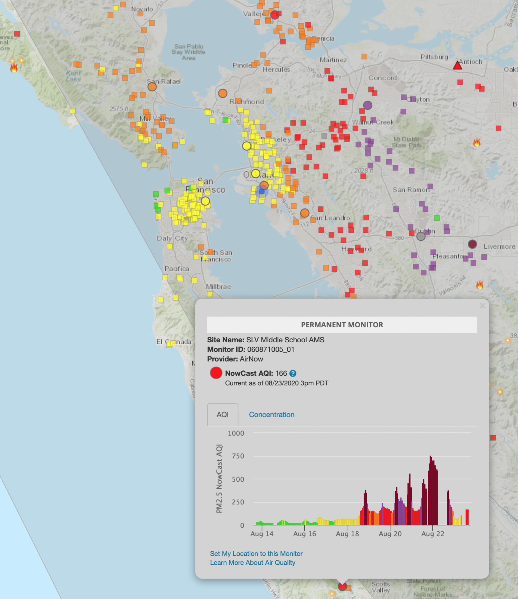 This is the highest AQI reading I have ever seen - reached 750 near Apple in Cupertino yesterday.