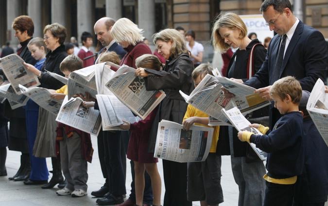 Not saying it’s not possible, however a bunch of people standing around reading newspapers don’t tend walk straight into post or open door, which I’ve seen with people on their phones…nor do they read newspapers while driving, causing accidents like peopld may when they text.I mean…