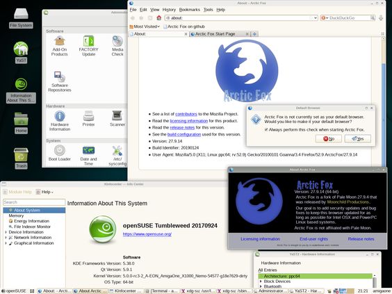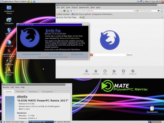 I tried to compile it without AltiVec support last days but it doesn't compile because I use a 64-bit kernel and a 32-bit userland. The Arctic Fox build system tries to compile 64-bit parts because of my 64-bit kernel and this doesn't work because I have only 32-bit libraries in the ubuntu MATE 16.04.5 userland. I switched to the 32-bit target (ac_add_options --target=powerpc-pc-linux-gnu) and after that it compiled further but it has detected my 64-bit kernel and after that the compiling has been stopped.