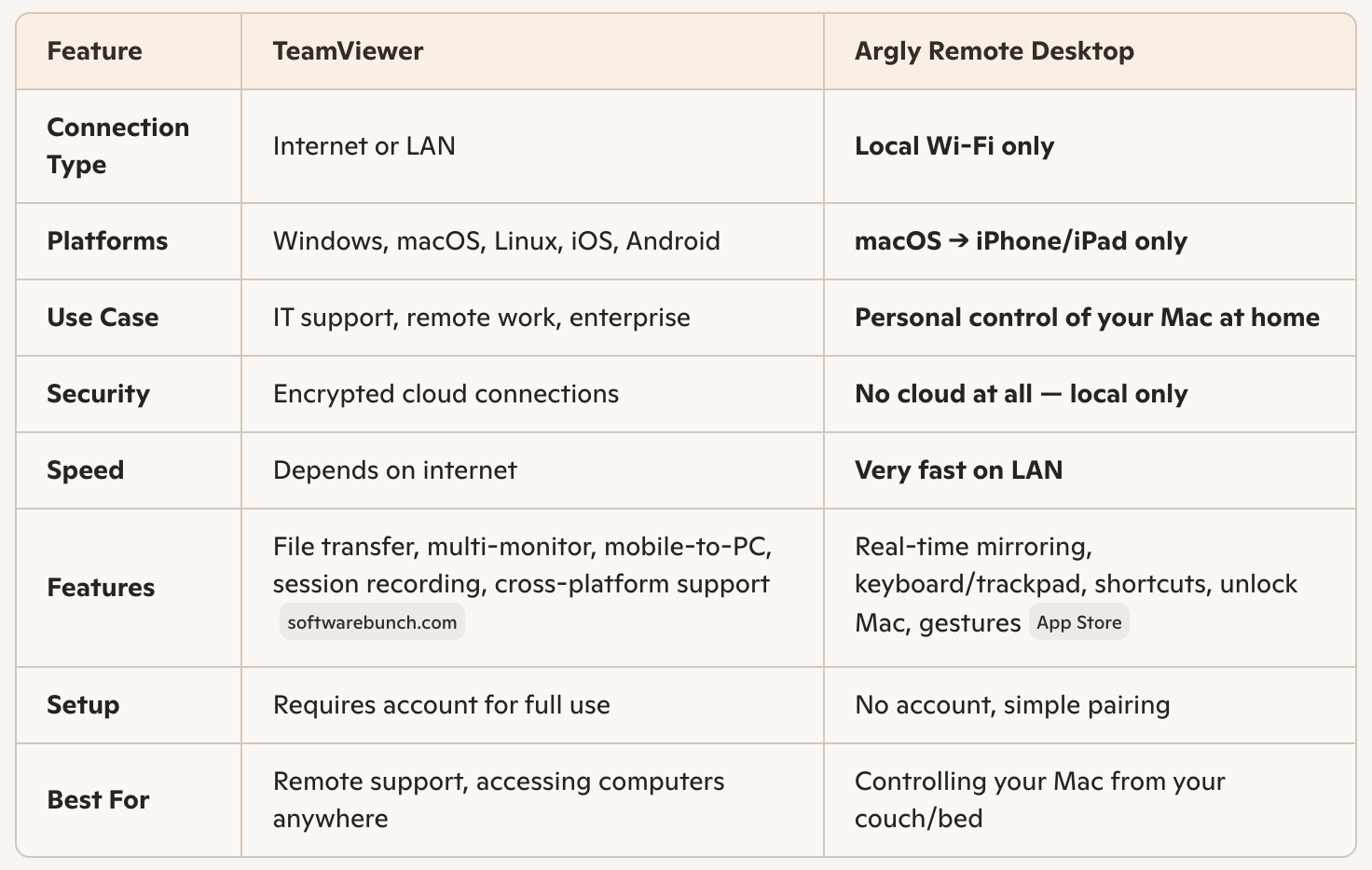 I built Argly - Remote Desktop - the other weekend because I had a need to remote control my macos from my iPhone. At night, I did not want to lug my laptop into bed with me so I built this app to connect to my macos through my iphone [and would send prompts through cursor then deploy to my iphone on the same network]!