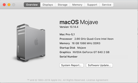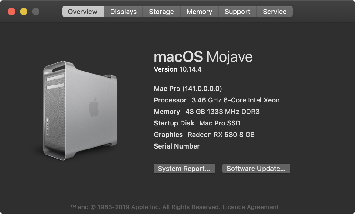 hello you all, i've entered a new mac pro 4,1 2009 bi proce, upgraded to 5,1 12 core with 1333mhz ram, on mojave, everything seems good but it just doesn't show "(2009)" on "about this mac", yes i connected to internet, and did the pram and smc reset. no clue for solutions, ask for anyone who knows or has expérience, many thanks